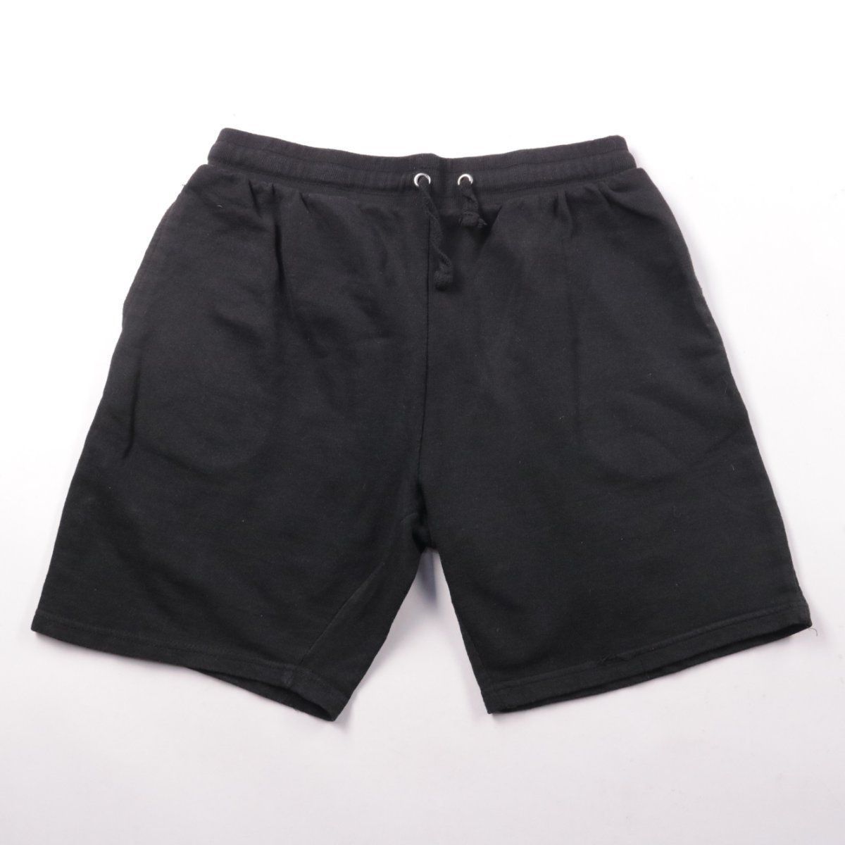 Мужские спортивные шорты Essentials чёрного цвета с эластичным поясом и шнурком. Подойдут для лета, тренировок и повседневной носки. Практичный плюс — мягкая ткань и удобная посадка без застёжек.