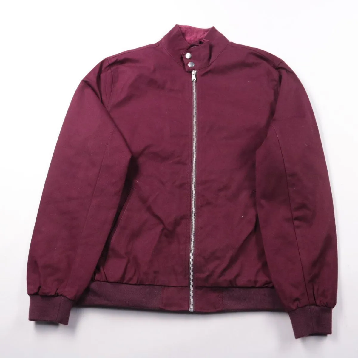Мужской бомбер Asos Design бордового цвета на молнии, со стойкой на кнопках и трикотажными манжетами. Подойдёт для повседневных образов в прохладную погоду весной и осенью. Хлопковый верх хорошо держит форму, а полиэстеровая подкладка облегчает надевание и комфорт в носке.