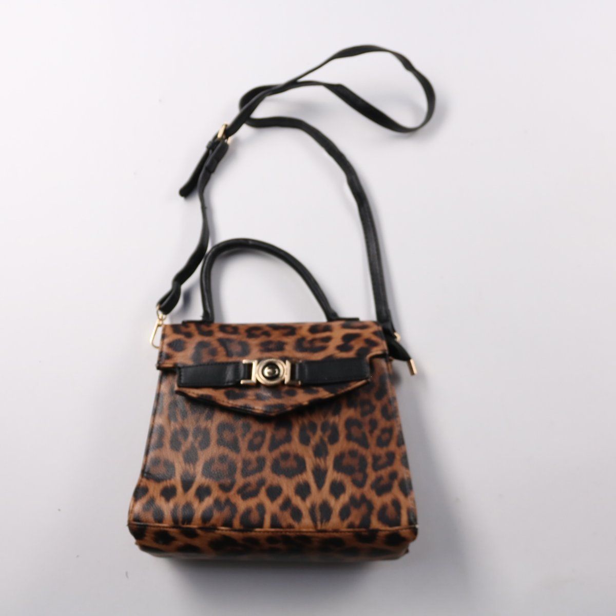 Небольшая сумка с леопардовым принтом и короткой ручкой, дополнена длинным ремнем для ношения через плечо. Подойдет для повседневных образов и выхода, когда нужны только самые важные вещи. Удобная застежка-клапан помогает быстро открывать и закрывать сумку.