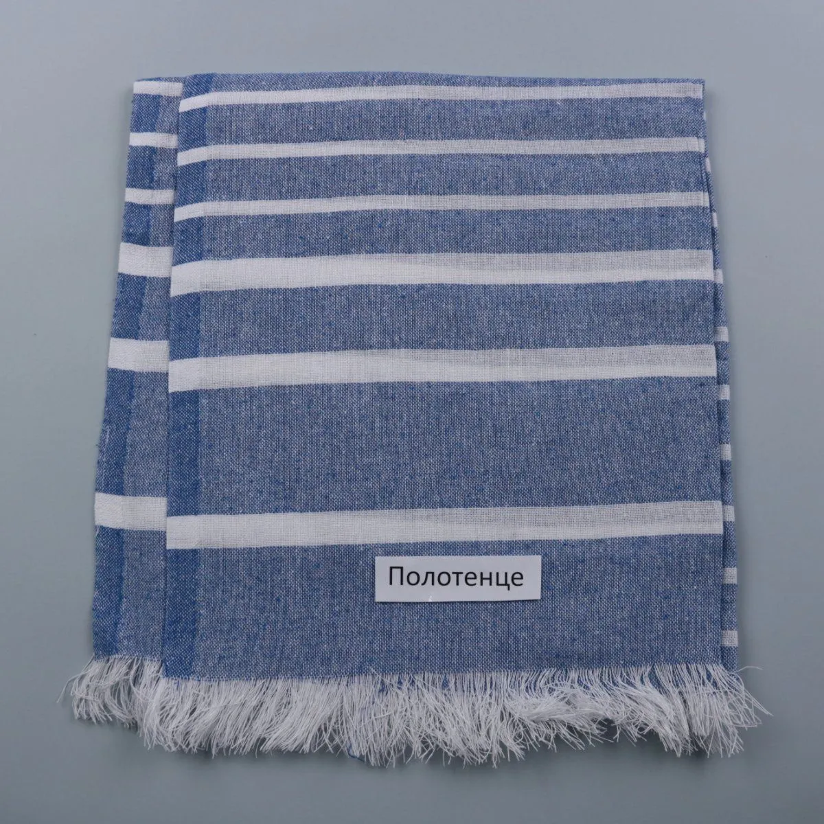 Полотенце Nivea (hammam handdoek) в сине-белую полоску с бахромой по краю. Подойдёт для ванной, пляжа или бассейна, а также как лёгкое полотенце в дорогу. Тонкая ткань быстро сохнет и компактно складывается.