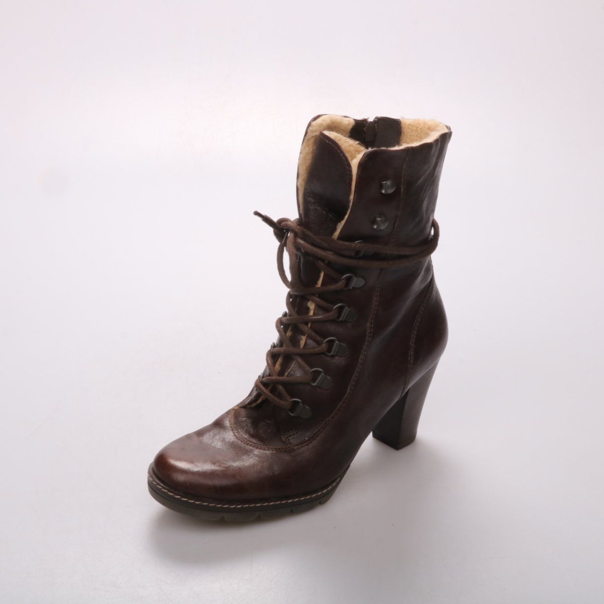 Ботильоны Paul Green из коричневой натуральной кожи на устойчивом каблуке, со шнуровкой и боковой молнией. Подойдут для повседневных образов в межсезонье и на прохладную погоду. Рельефная подошва даёт более уверенное сцепление на улице.