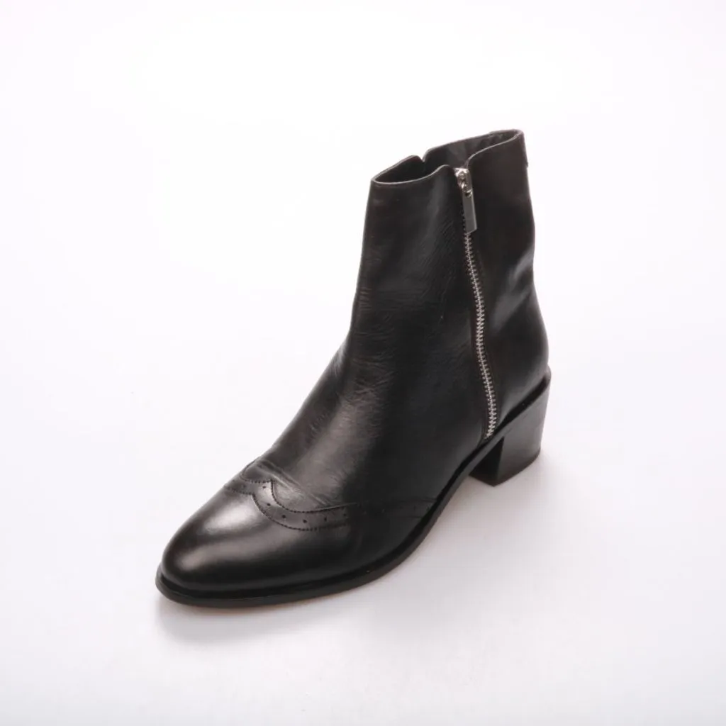 Женские ботильоны Esprit из чёрной кожи с декоративной перфорацией на мысе и боковой молнией. Подойдут для повседневных городских образов в межсезонье, с джинсами или платьями. Устойчивый каблук делает ходьбу комфортнее, а молния помогает быстро обуват...