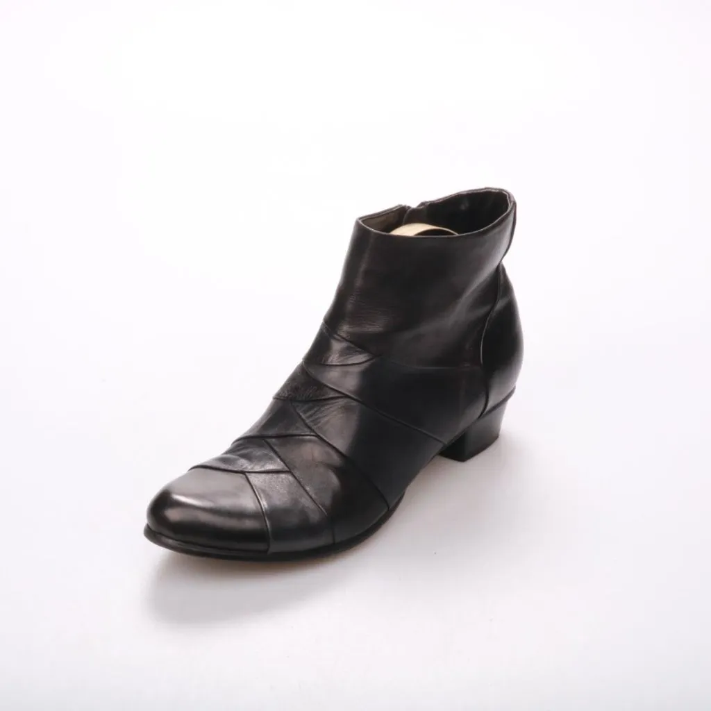 Ботильоны Ralph Harrison из чёрной кожи с боковой молнией и низким устойчивым каблуком. Подойдут для повседневной носки в городе в демисезон и прохладную погоду. Практичное преимущество — удобная посадка и быстрый надев/снятие за счёт молнии.