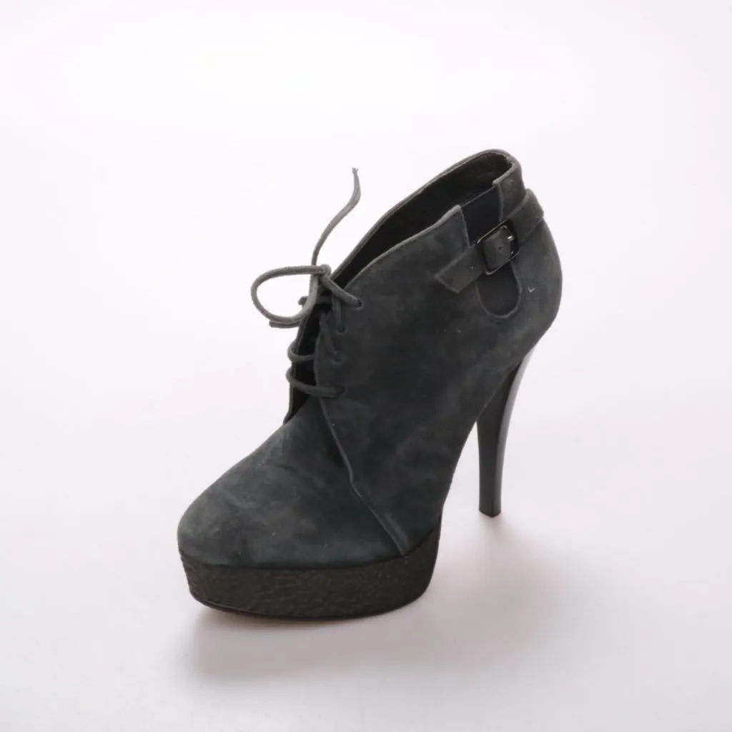 Женские ботильоны Buffalo London из замши на шнуровке, с платформой и тонким высоким каблуком. Подойдут для образов на выход и на прохладную погоду в межсезонье. Платформа добавляет устойчивости по сравнению с классическими шпильками.