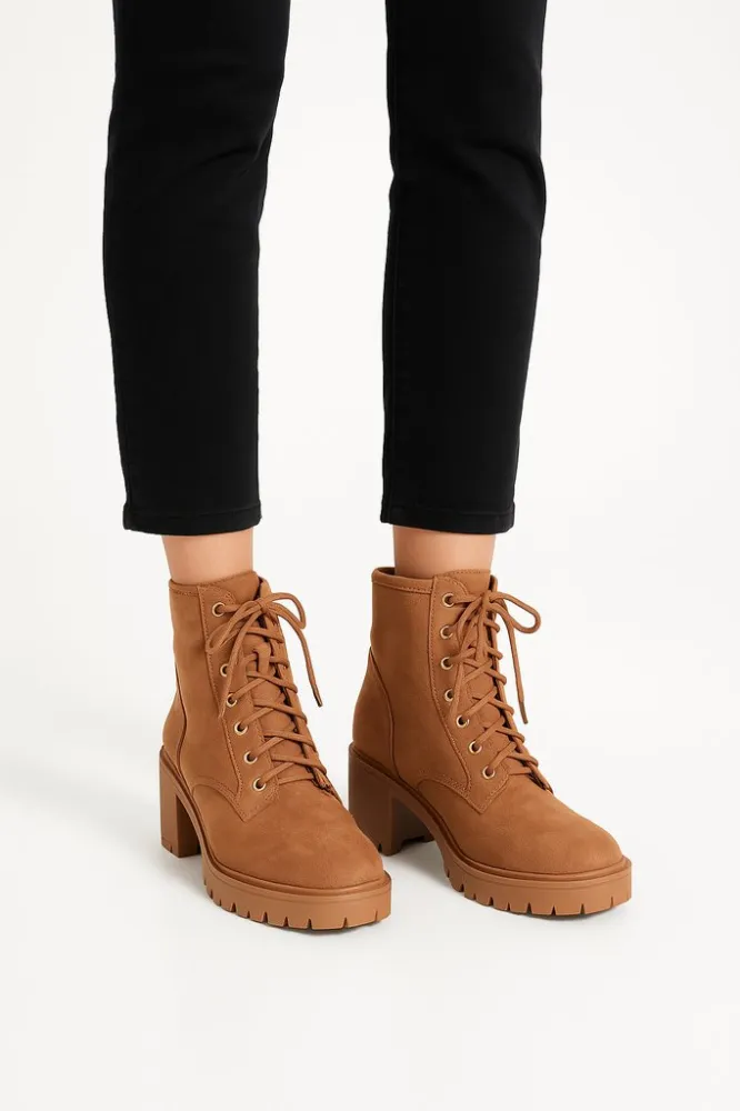 Женские замшевые ботинки на шнуровке с боковой молнией и устойчивым каблуком. Подойдут для повседневных образов в демисезон с джинсами, брюками и платьями. Рельефная тракторная подошва хорошо держит сцепление и добавляет устойчивости при ходьбе.