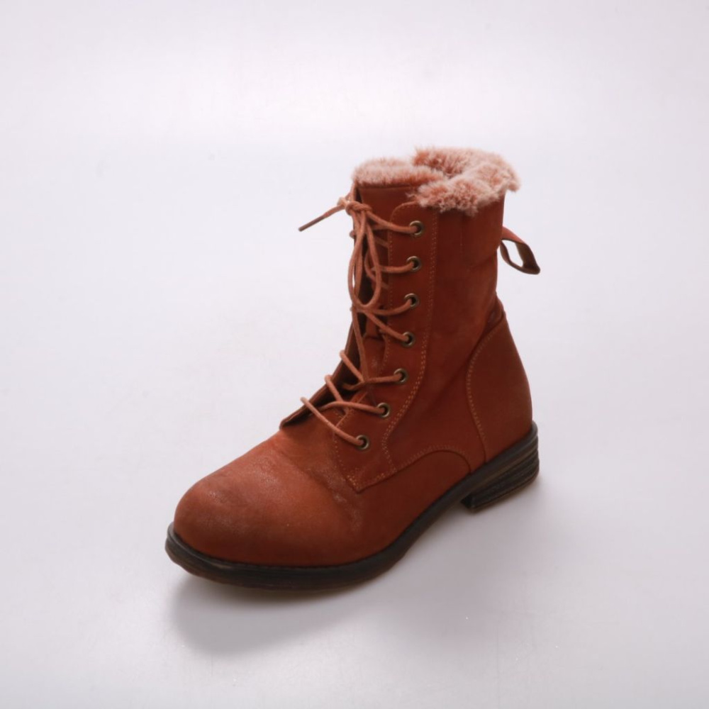 Зимние ботинки на шнуровке с боковой молнией и меховой отделкой по краю. Подойдут для повседневной носки в холодную погоду, удобны с джинсами и тёплыми платьями. Рифлёная подошва даёт хорошее сцепление на скользкой поверхности.