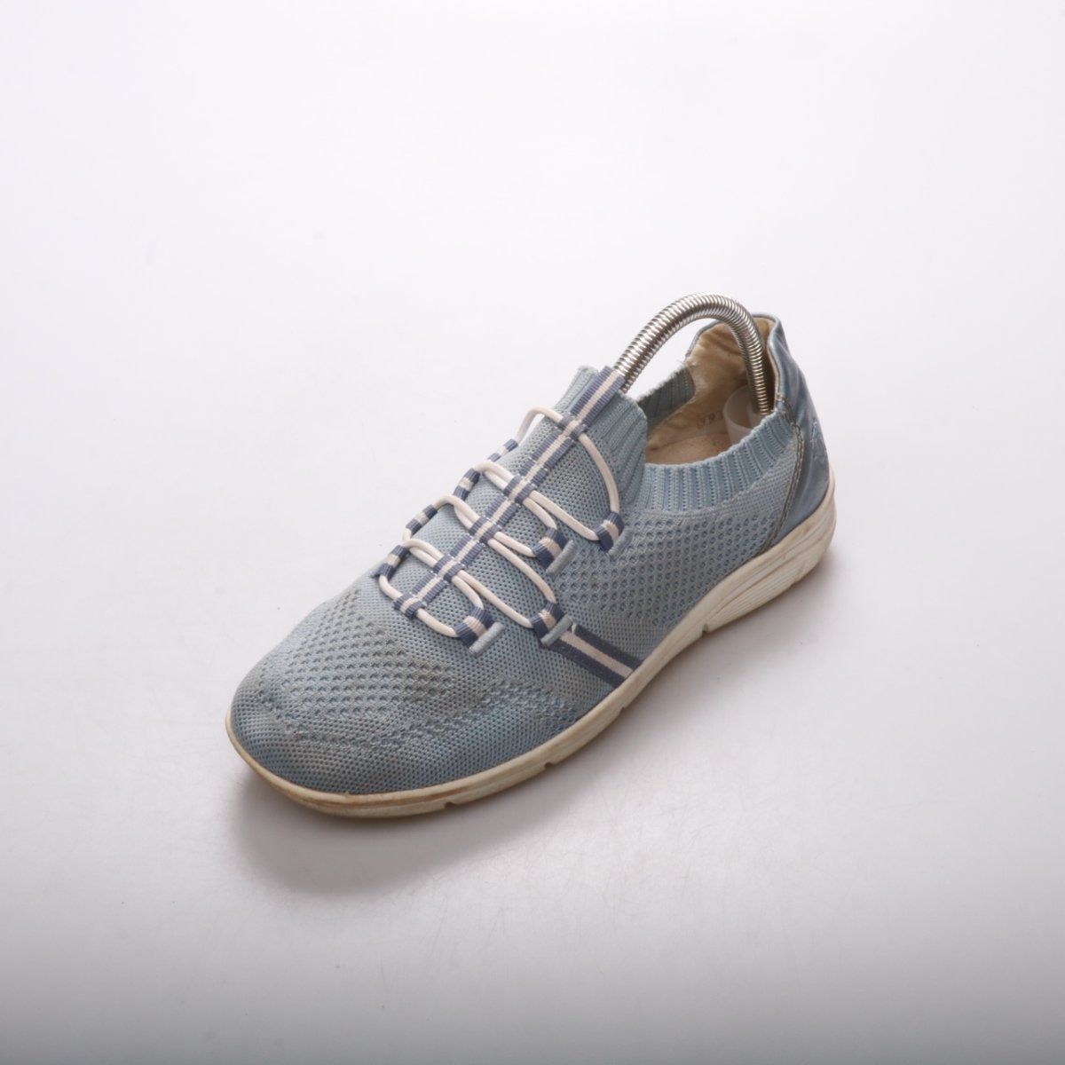 Женские кроссовки Rieker из текстиля в голубом цвете с лёгким сетчатым верхом и шнуровкой-резинкой. Подойдут для летних прогулок и повседневной носки, хорошо сочетаются с джинсами и спортивными образами. Лёгкая подошва обеспечивает комфорт при ходьбе и не утяжеляет стопу.