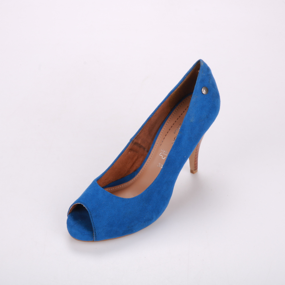 Женские туфли S.Oliver из синей замши с открытым носком и каблуком средней высоты. Подойдут для лета и тёплой весны, хорошо смотрятся с платьями и брюками в повседневном и офисном стиле. Кожаная стелька делает носку более комфортной.