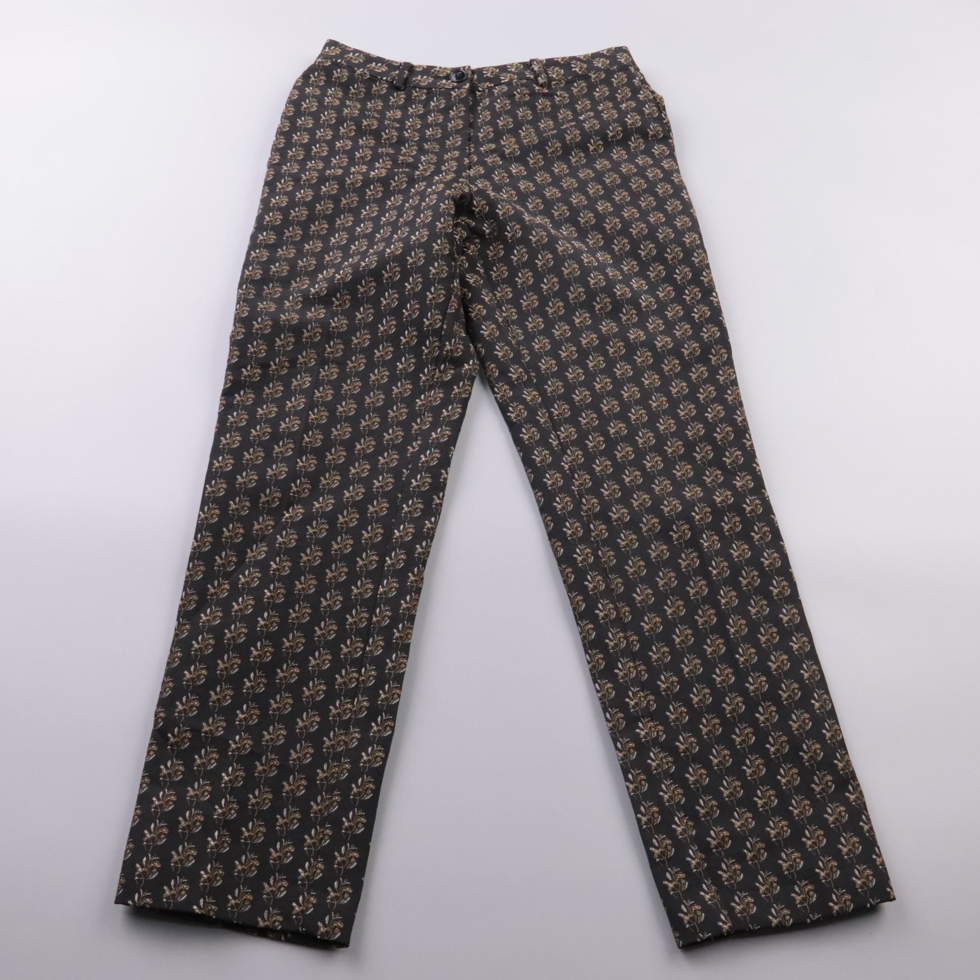 Женские брюки H&M прямого кроя из ткани с жаккардовым узором и лёгким металлизированным блеском. Подойдут для офиса, ужинов и мероприятий, когда хочется выглядеть нарядно без платья. Плотный материал держит форму и аккуратно смотрится в течение дня.