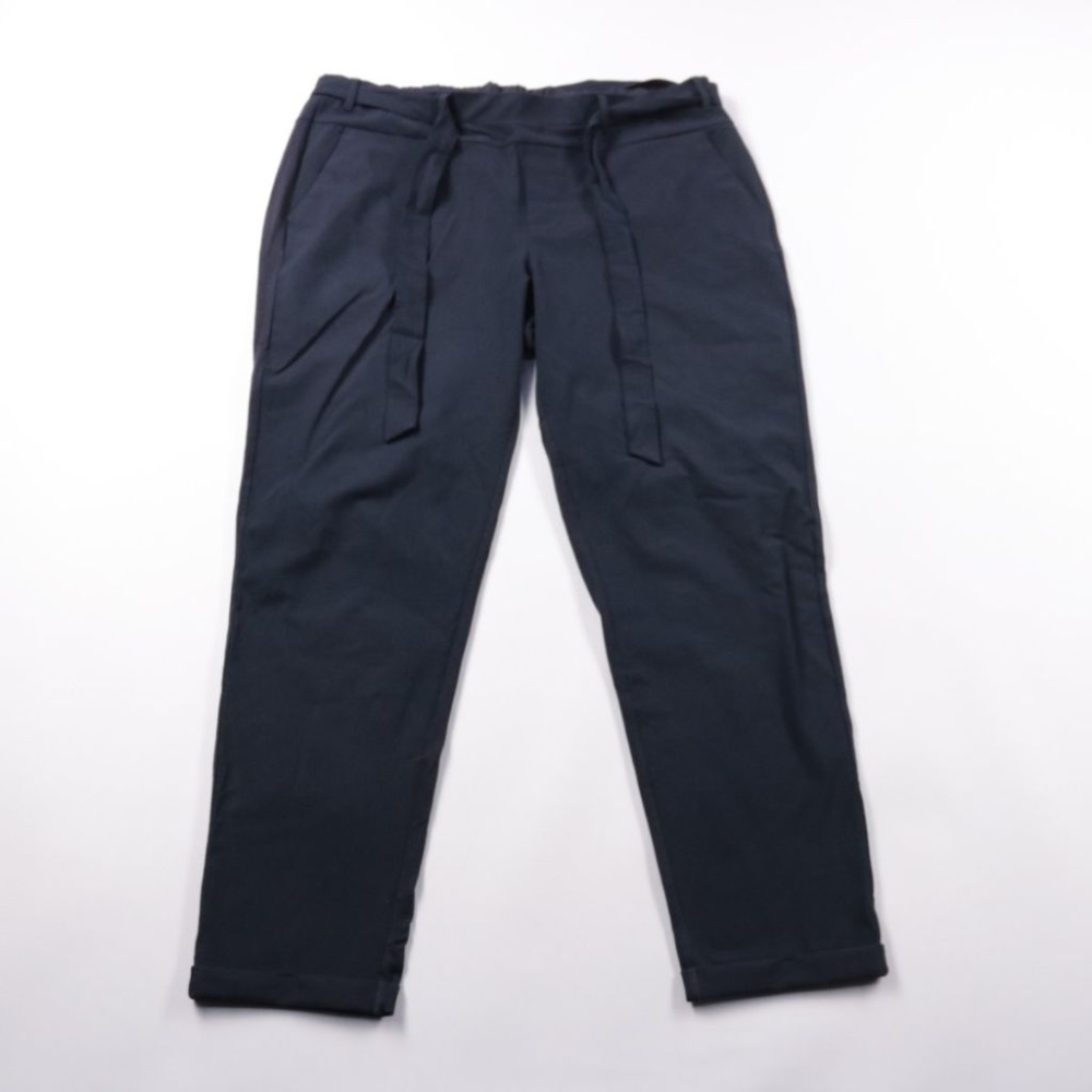 Женские брюки Kaffe тёмно-синего цвета, модель прямого кроя с защипами и поясом-завязкой. Подойдут для офиса и повседневных образов с рубашками и свитерами. Практичны за счёт универсального цвета и комфортной посадки на талии.