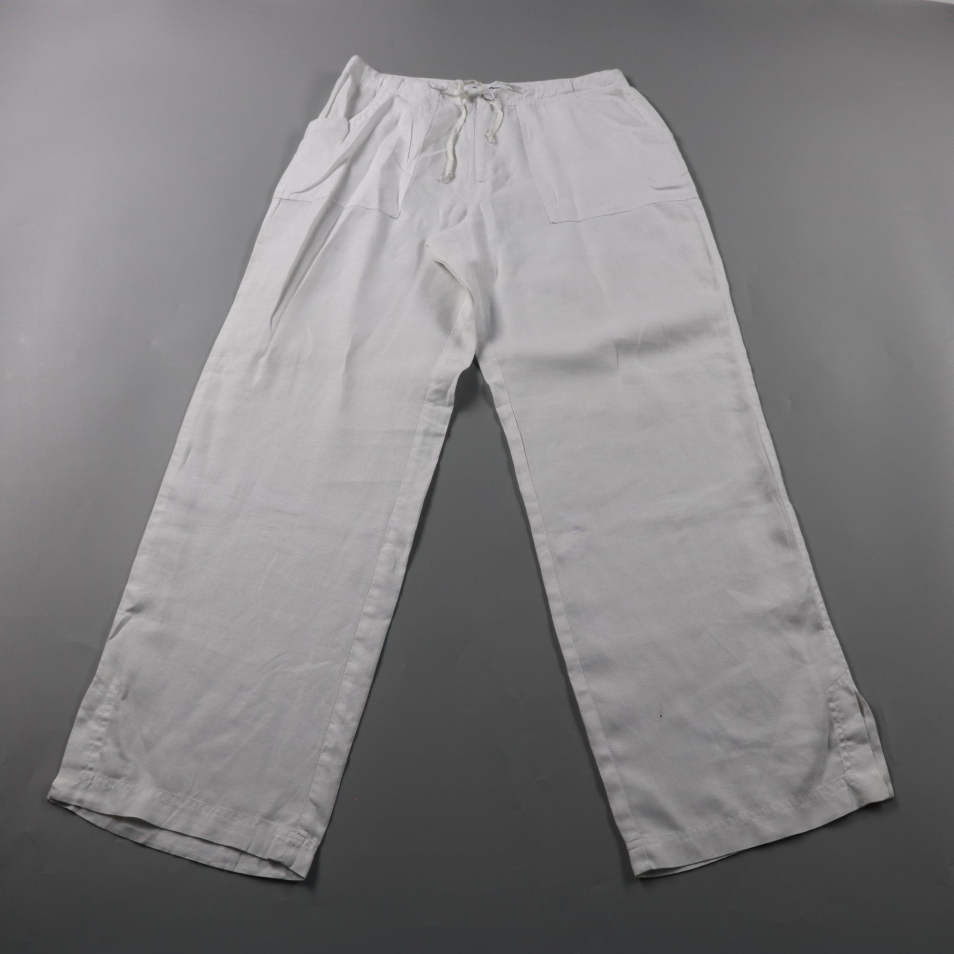 Женские белые льняные брюки Esprit прямого кроя с завязками на поясе и карманами. Подойдут для лета, отпуска и повседневных образов в жаркую погоду. Лён хорошо «дышит» и комфортен в носке.