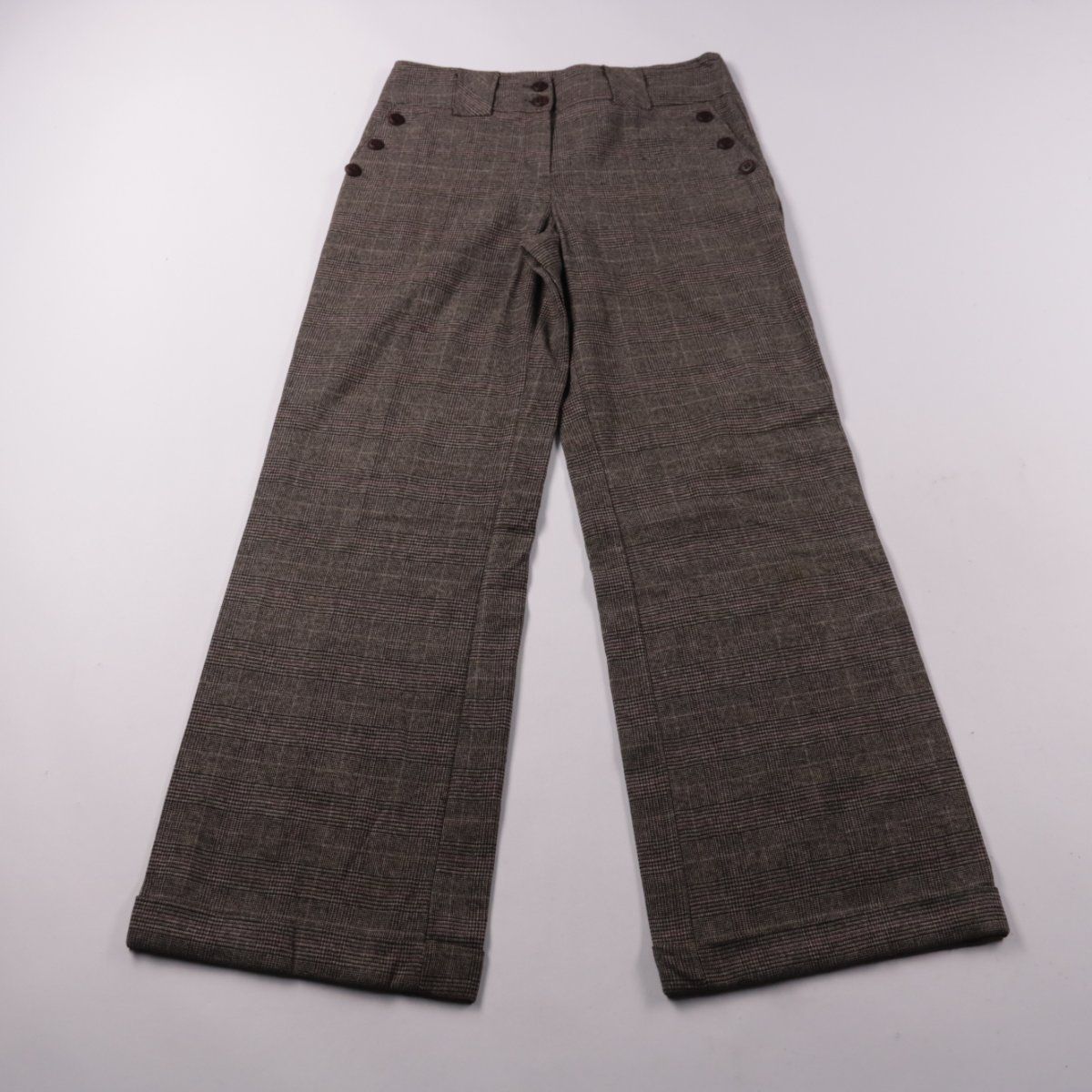Брюки Miss Elan с высокой посадкой и широкими штанинами, выполнены из костюмной ткани в клетку. Подойдут для офиса и повседневных образов с рубашкой или водолазкой. Свободный крой не сковывает движения и комфортен в течение дня.