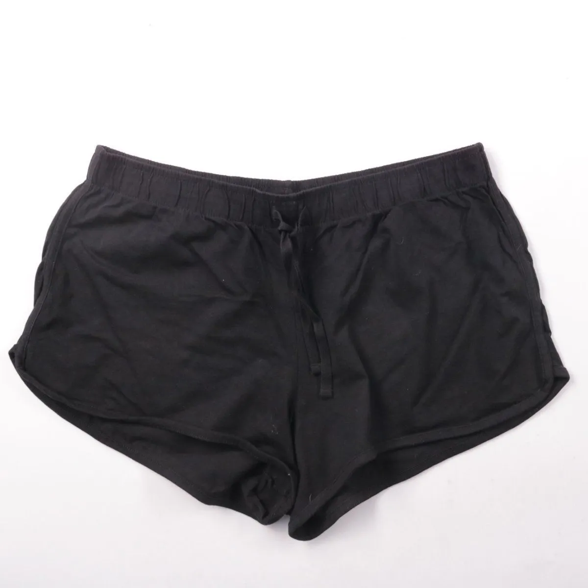 Чёрные шорты George с эластичным поясом и шнурком, короткая спортивная посадка с закруглёнными боковыми разрезами. Подойдут для дома, сна или лёгких тренировок в тёплую погоду. Лёгкий хлопковый материал комфортен и прост в уходе.