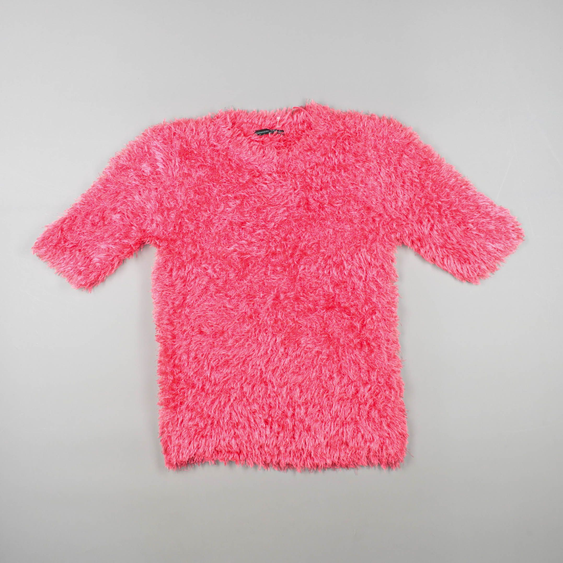 Женский пушистый свитер с коротким рукавом, бренд не указан. Яркий розовый цвет и фактура «травка» делают его заметным акцентом для повседневных образов. Мягкий и тёплый, удобно носить как самостоятельный верх или поверх топа.