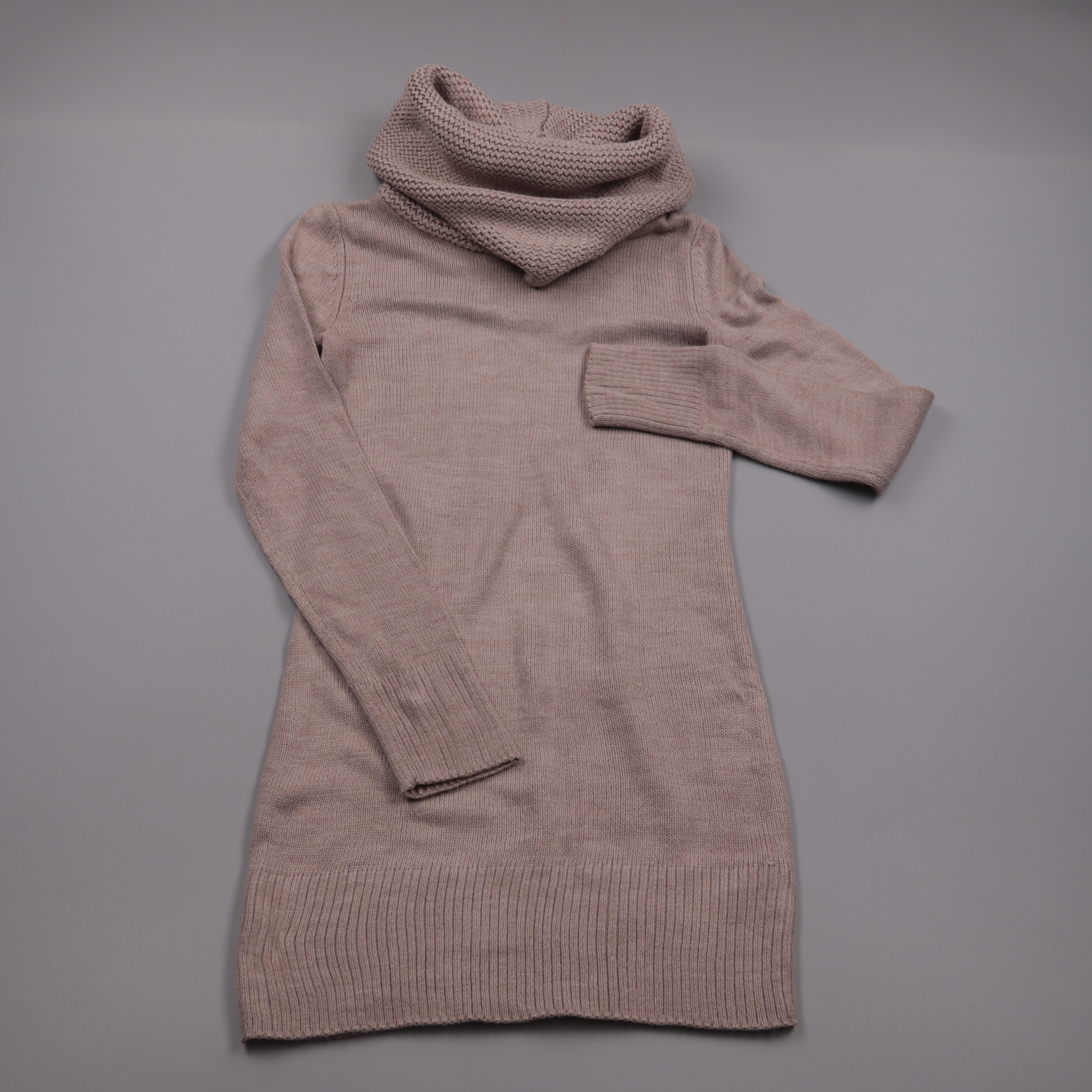 Вязаный свитер H&M BASIC удлинённого кроя с объёмным воротником-хомутом и манжетами в рубчик. Подойдёт для повседневных образов в прохладную погоду и хорошо сочетается с джинсами или легинсами. Мягкий акрил легко стирается и быстро сохнет.