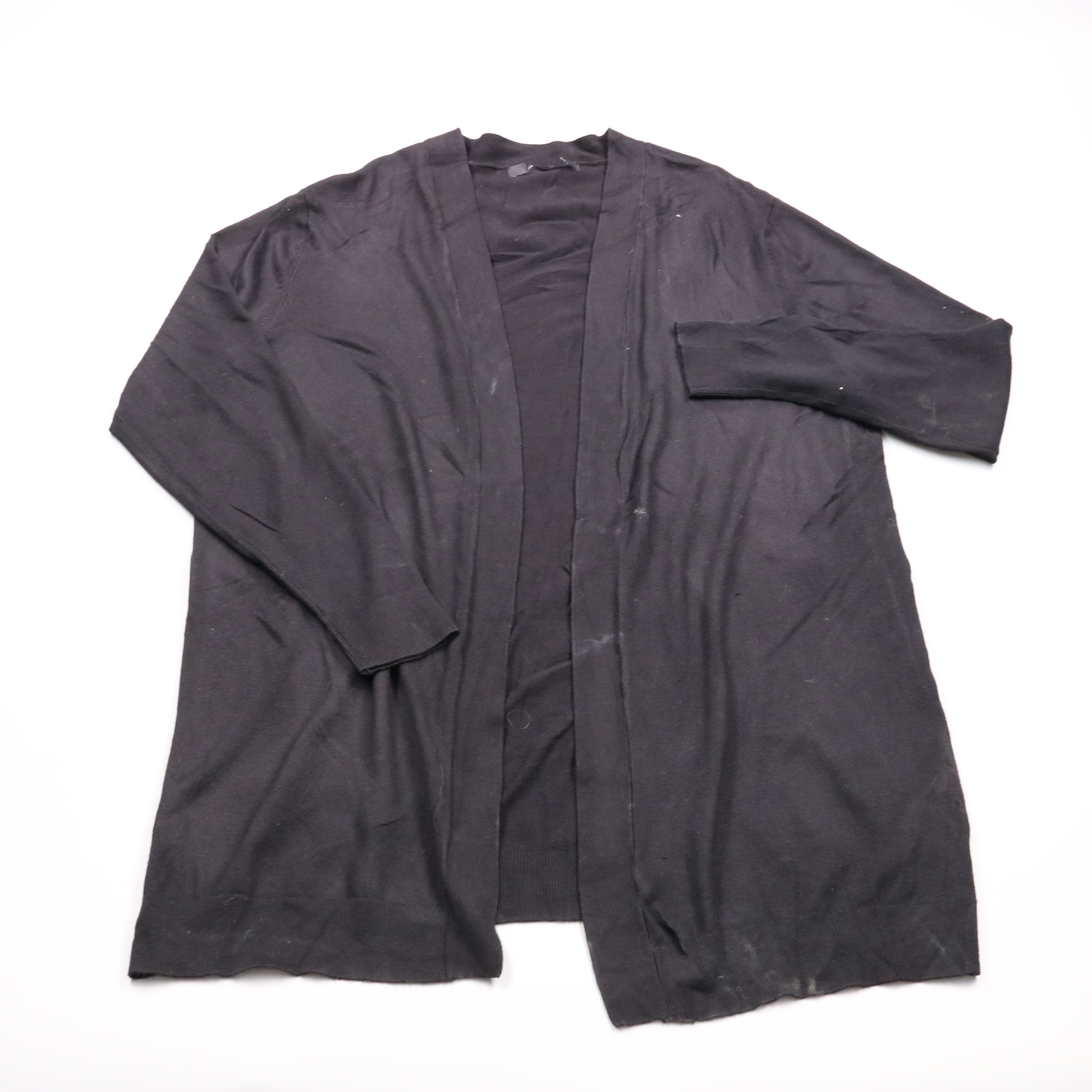 Женский кардиган H&M чёрного цвета, удлинённый и без застёжки. Подойдёт для офиса и повседневных образов как лёгкий верхний слой поверх топа или платья. Практичен тем, что легко комбинируется с любой базовой одеждой и не занимает много места.