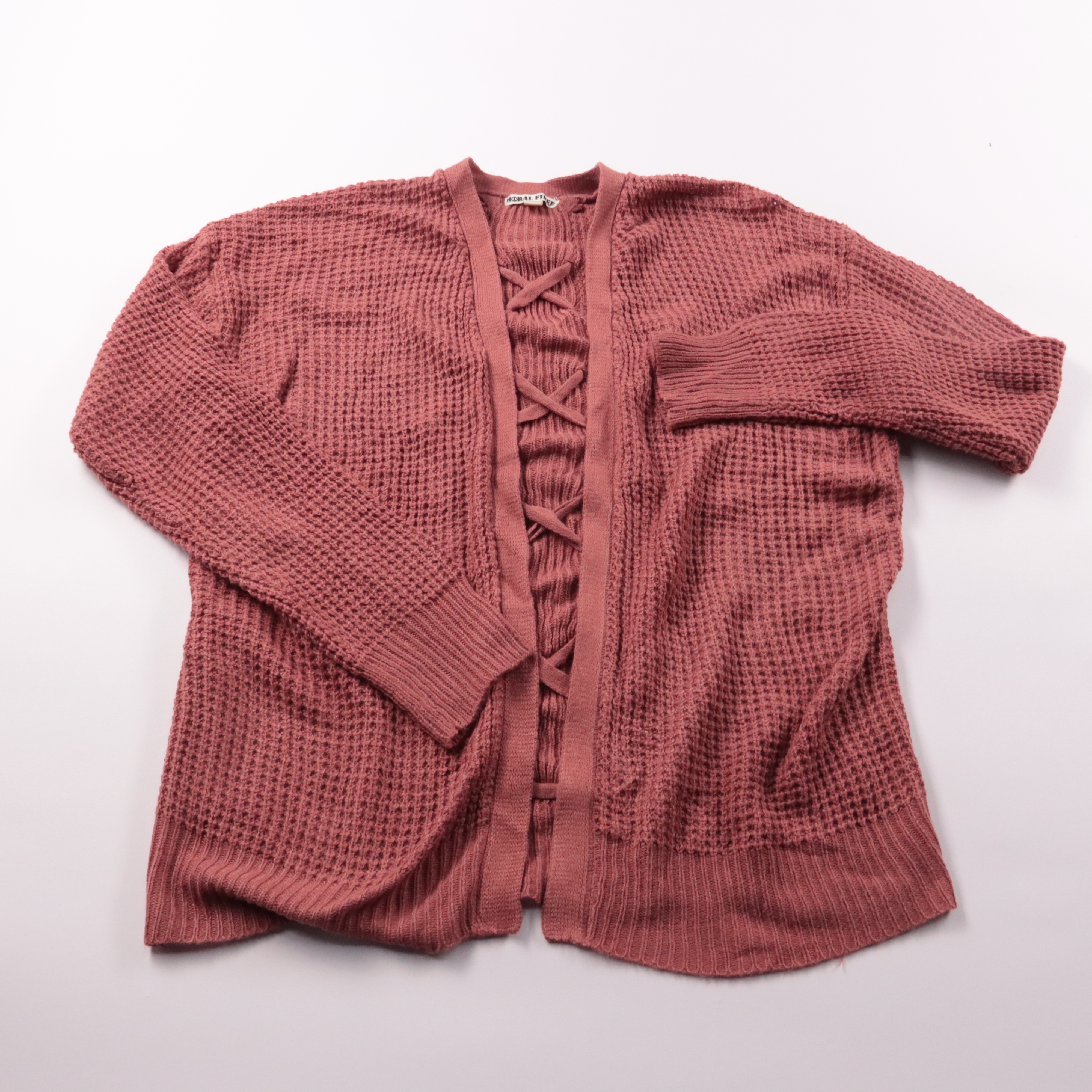 Вязаный кардиган Moral Fiber пыльно-розового оттенка с фактурной вязкой и шнуровкой спереди. Подойдёт для повседневных образов в прохладную погоду и как верхний слой в офис. Акриловая пряжа лёгкая в уходе и быстро сохнет после стирки.