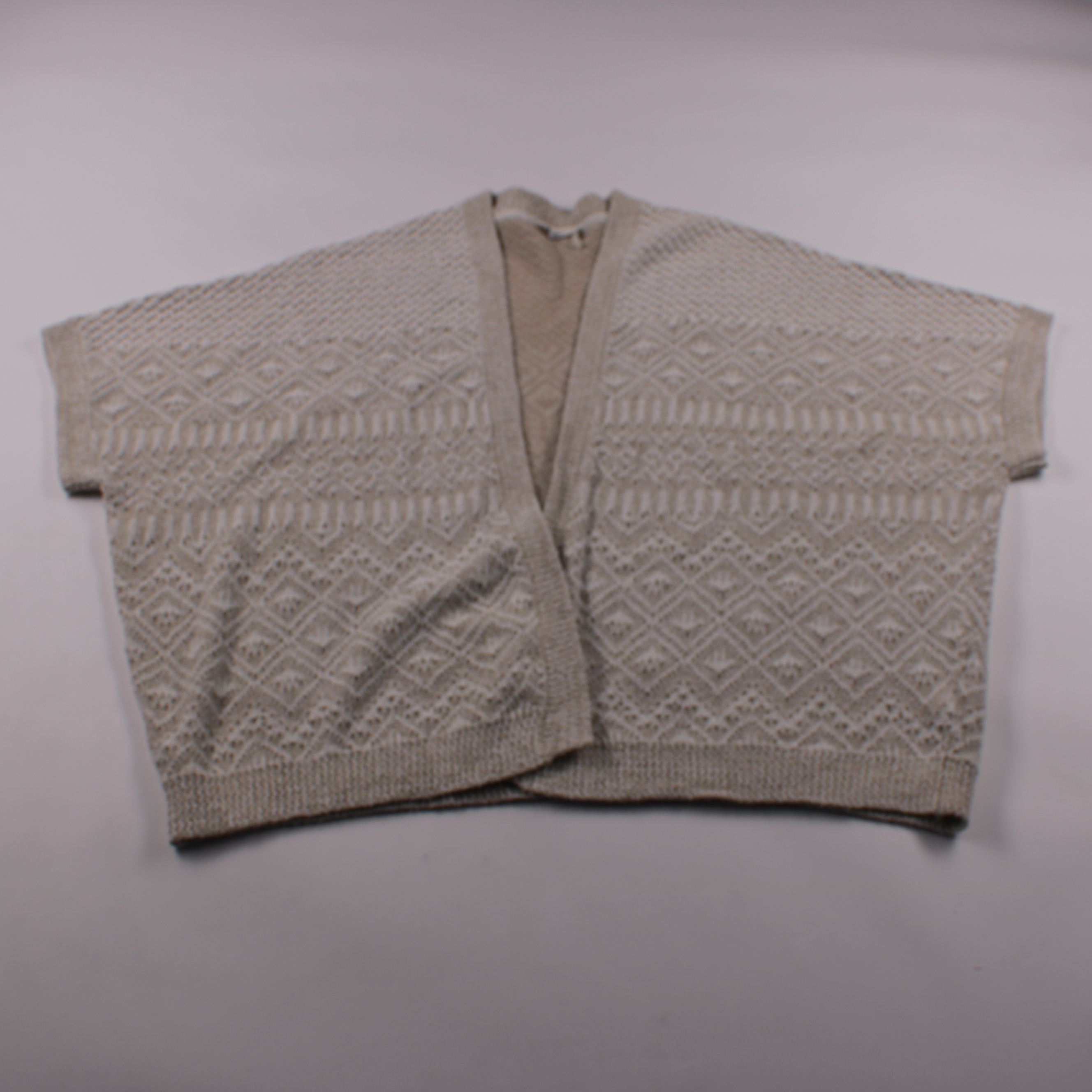 Вязаный кардиган FatFace в светло-бежевом (ivory) оттенке с фактурным геометрическим узором и укороченным рукавом. Подойдёт для многослойных образов на прохладную погоду — поверх топа, платья или водолазки. Благодаря хлопковому составу приятен к телу и...