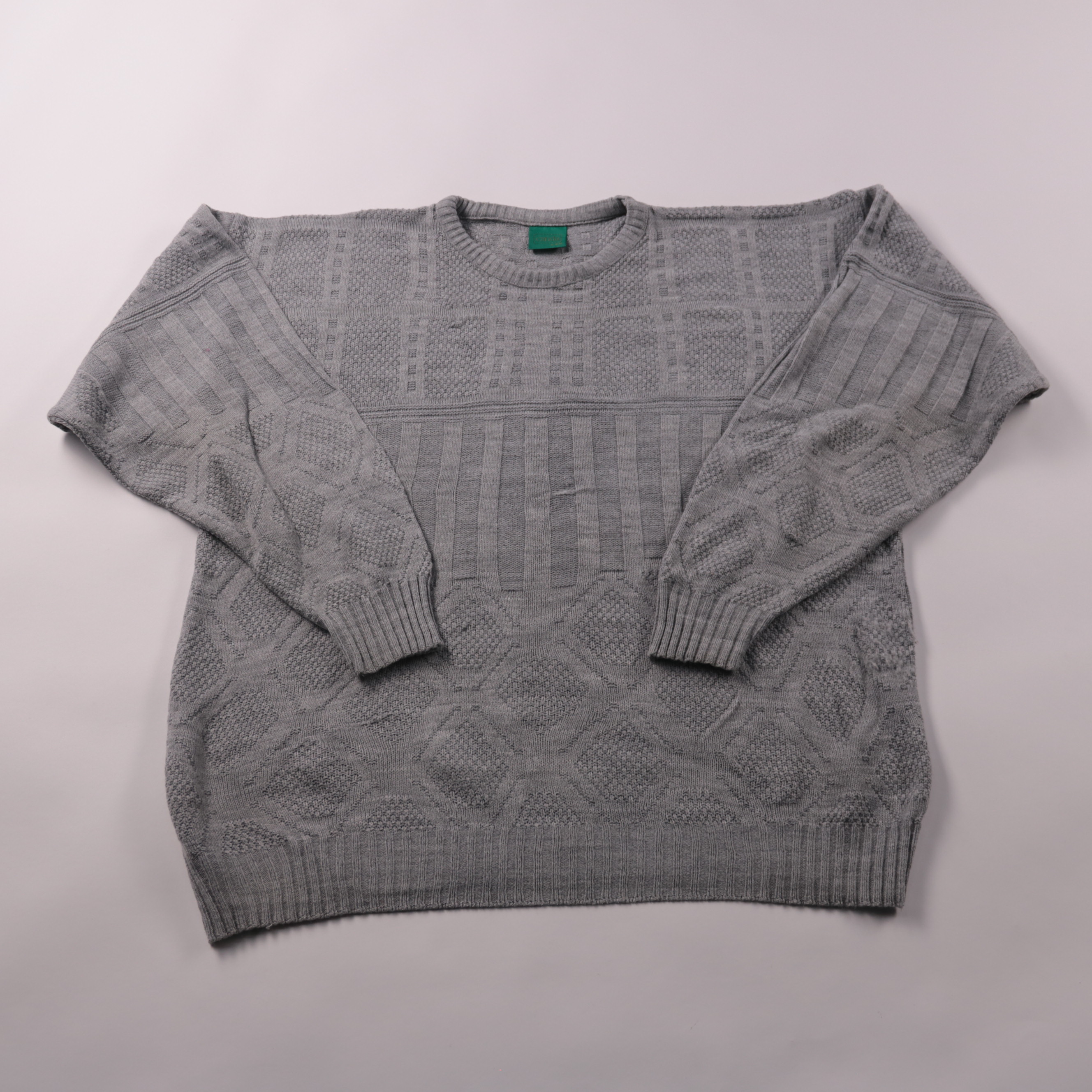 Серый вязаный джемпер Canda с рельефным узором и круглым вырезом. Подойдёт для повседневных образов в прохладную погоду, хорошо смотрится с джинсами или брюками. Плотная вязка даёт комфорт и сохраняет форму.