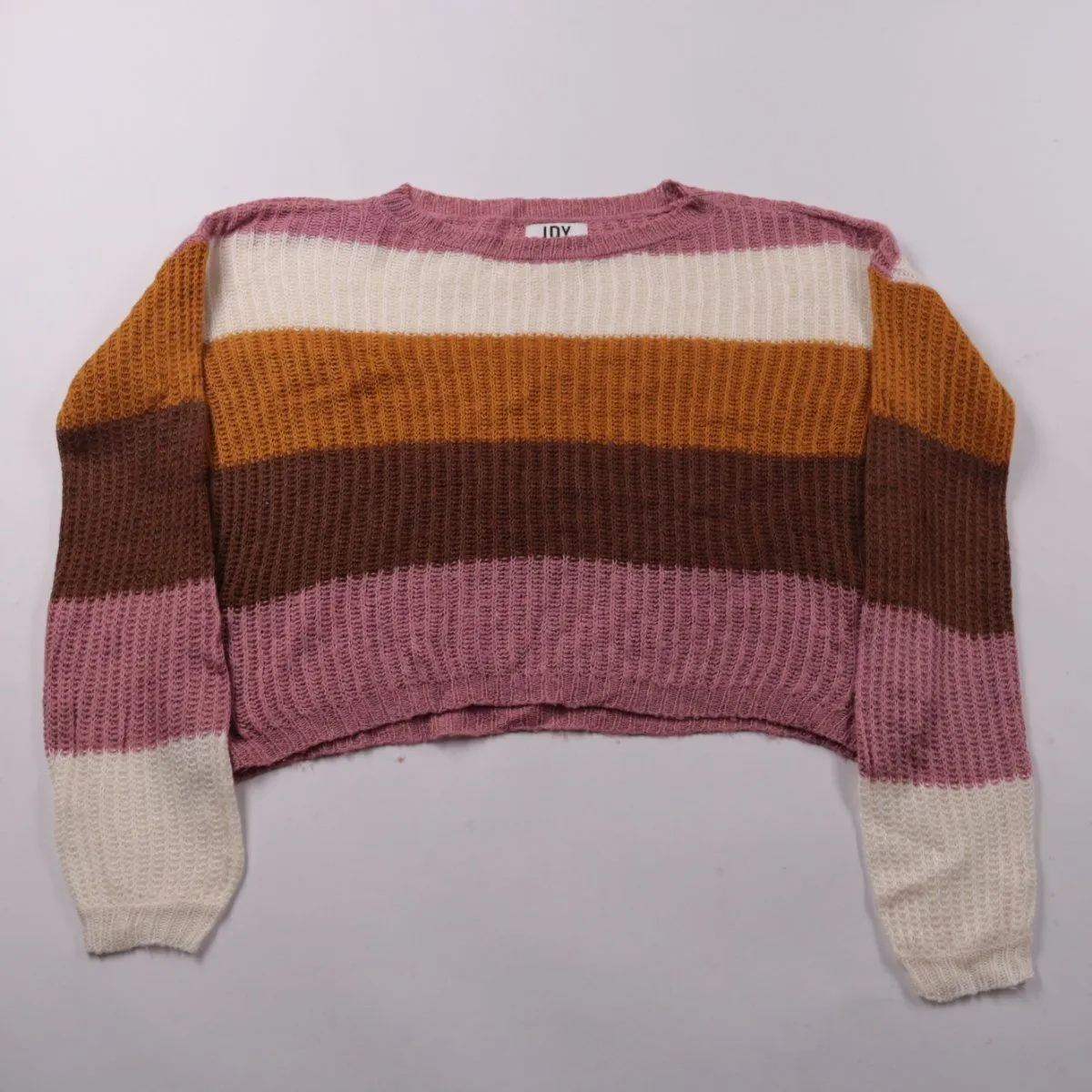 Вязаный свитер JDY в широкую полоску, укороченный крой и круглый вырез. Подойдёт для повседневных образов с джинсами или юбкой в прохладную погоду. Акриловая пряжа лёгкая в уходе и быстро сохнет.