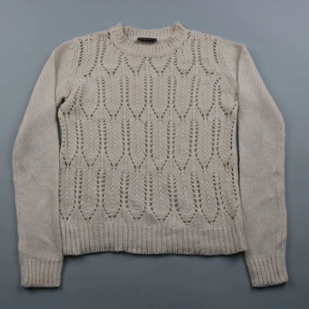 Вязаный джемпер Janina молочного оттенка с ажурным узором и круглым вырезом. Подойдёт для повседневных образов в прохладную погоду, хорошо сочетается с джинсами и юбками. Практичное преимущество — мягкая вязка и комфортная посадка благодаря эластичным ...
