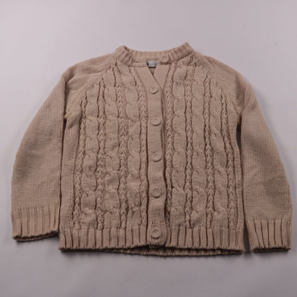 Вязаный кардиган на пуговицах с фактурным узором «косы», цвет бежевый. Подойдёт для прохладной погоды и многослойных образов на каждый день. Практичен тем, что акриловый трикотаж неприхотлив в уходе и быстро сохнет.