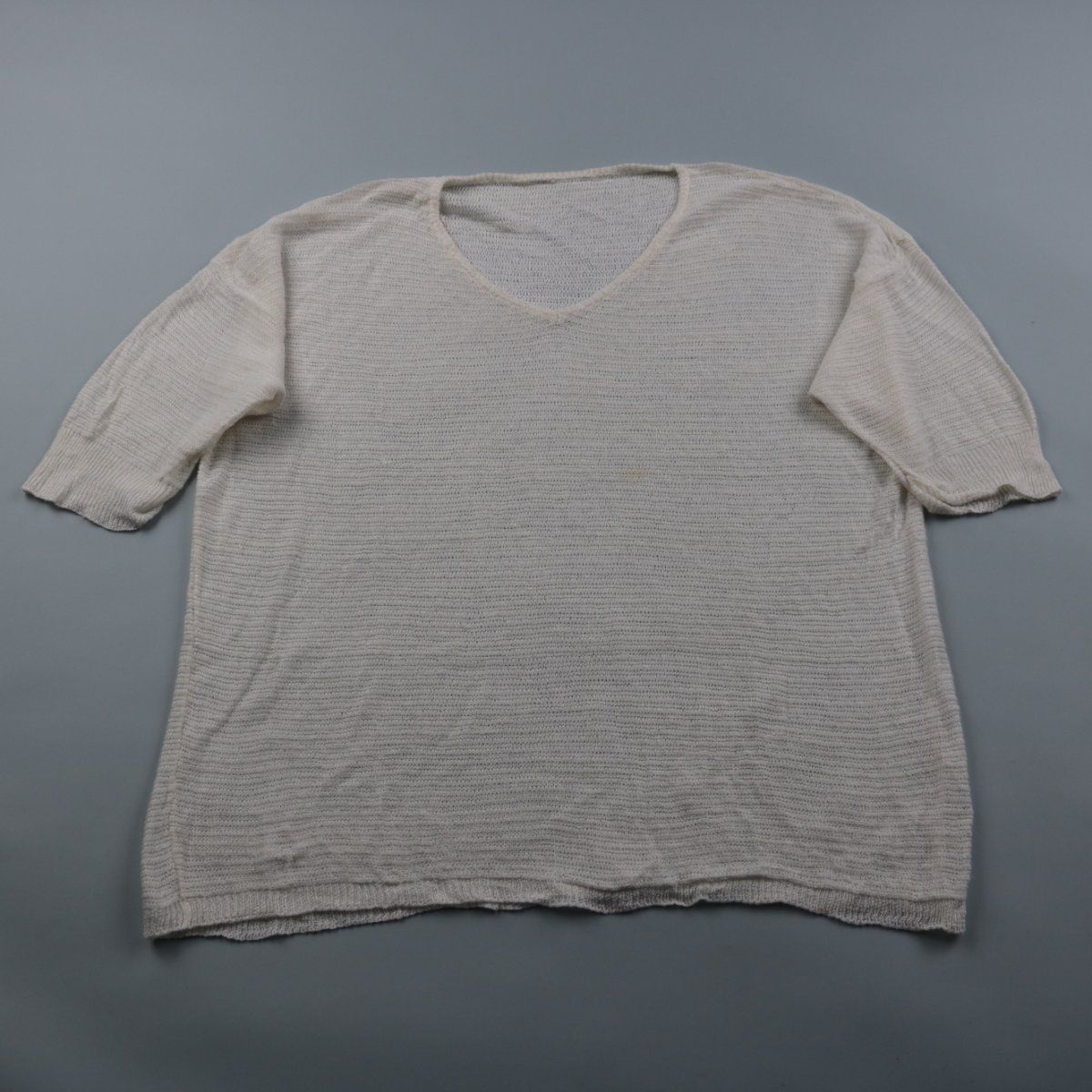 Лёгкая вязаная кофта с V-образным вырезом и коротким рукавом, без указанного бренда. Подойдёт для тёплой погоды и многослойных образов с топом или рубашкой. Мягкий трикотаж хорошо пропускает воздух и не стесняет движения.