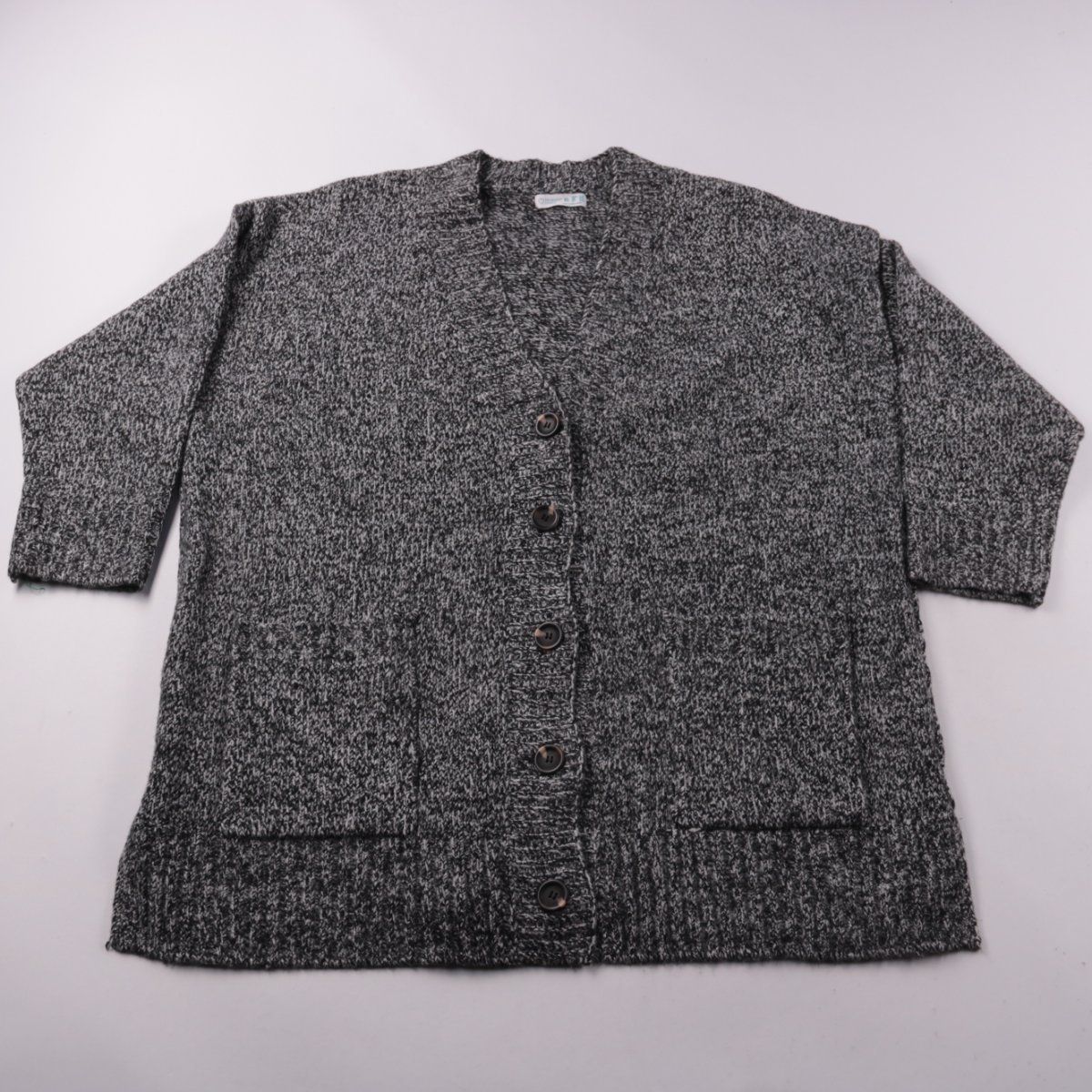 Вязаный кардиган Primark серого меланжевого цвета с V-образным вырезом и застёжкой на пуговицы, есть накладные карманы. Подойдёт для повседневных образов в офис или на прогулку в прохладную погоду. Мягкий трикотаж удобно носить как второй слой и легко сочетать с базовыми вещами.