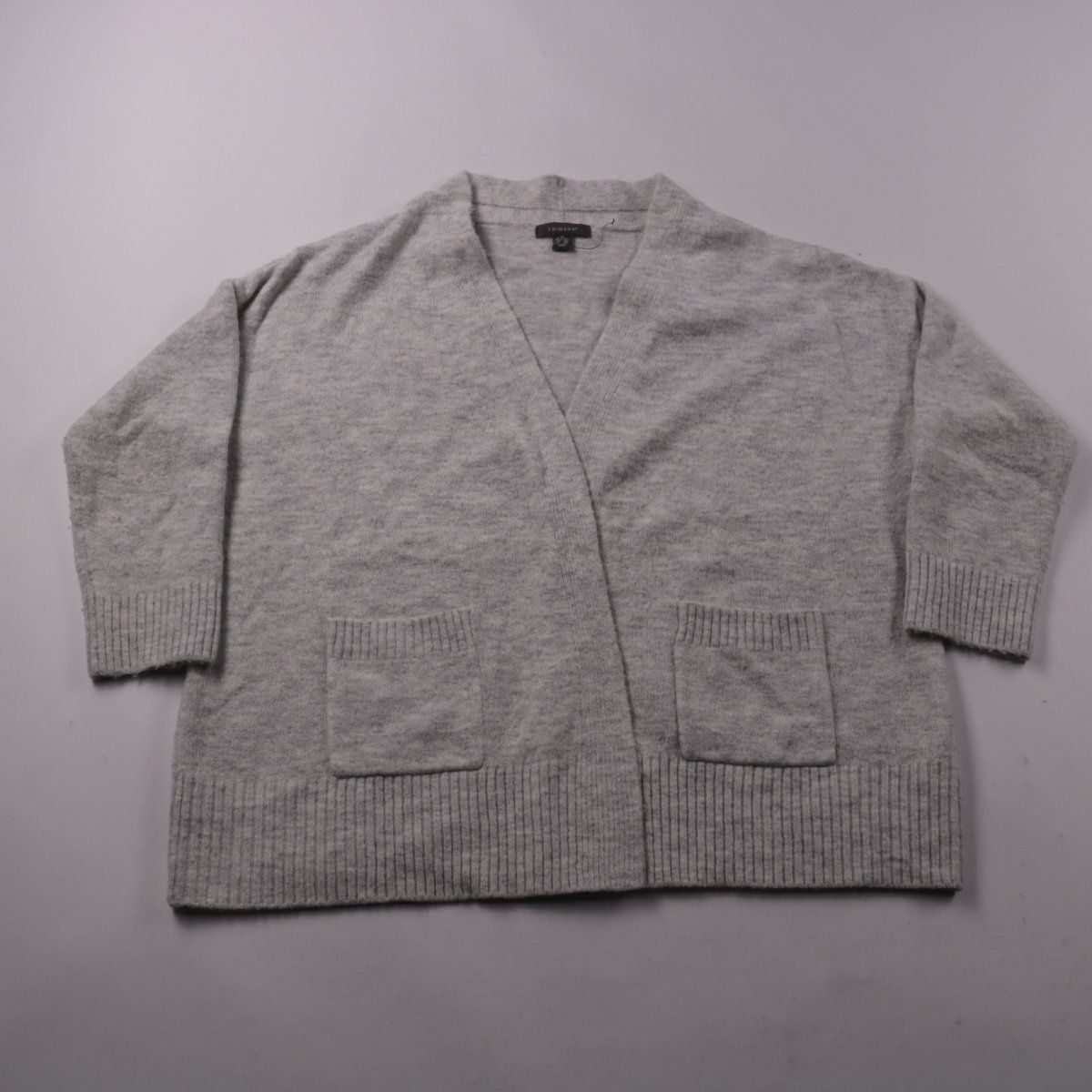 Кардиган Primark серого меланжа, трикотажный, с запахом без застёжки и накладными карманами. Подойдёт для повседневных образов и офисной многослойности в прохладную погоду. Материал с добавлением эластана чуть тянется и комфортно садится по фигуре.