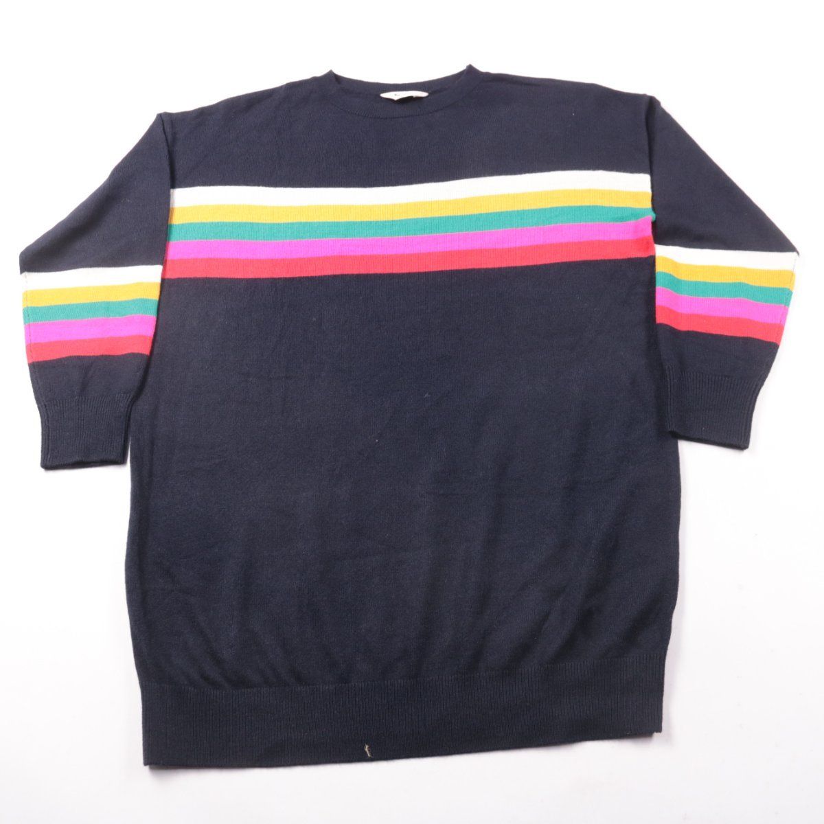 Джемпер Tu Woman Petite в тёмно-синем цвете с яркими горизонтальными полосками и круглым вырезом. Подойдёт для повседневных образов в прохладную погоду, хорошо сочетается с джинсами и юбками. Акриловый трикотаж прост в уходе и быстро сохнет.