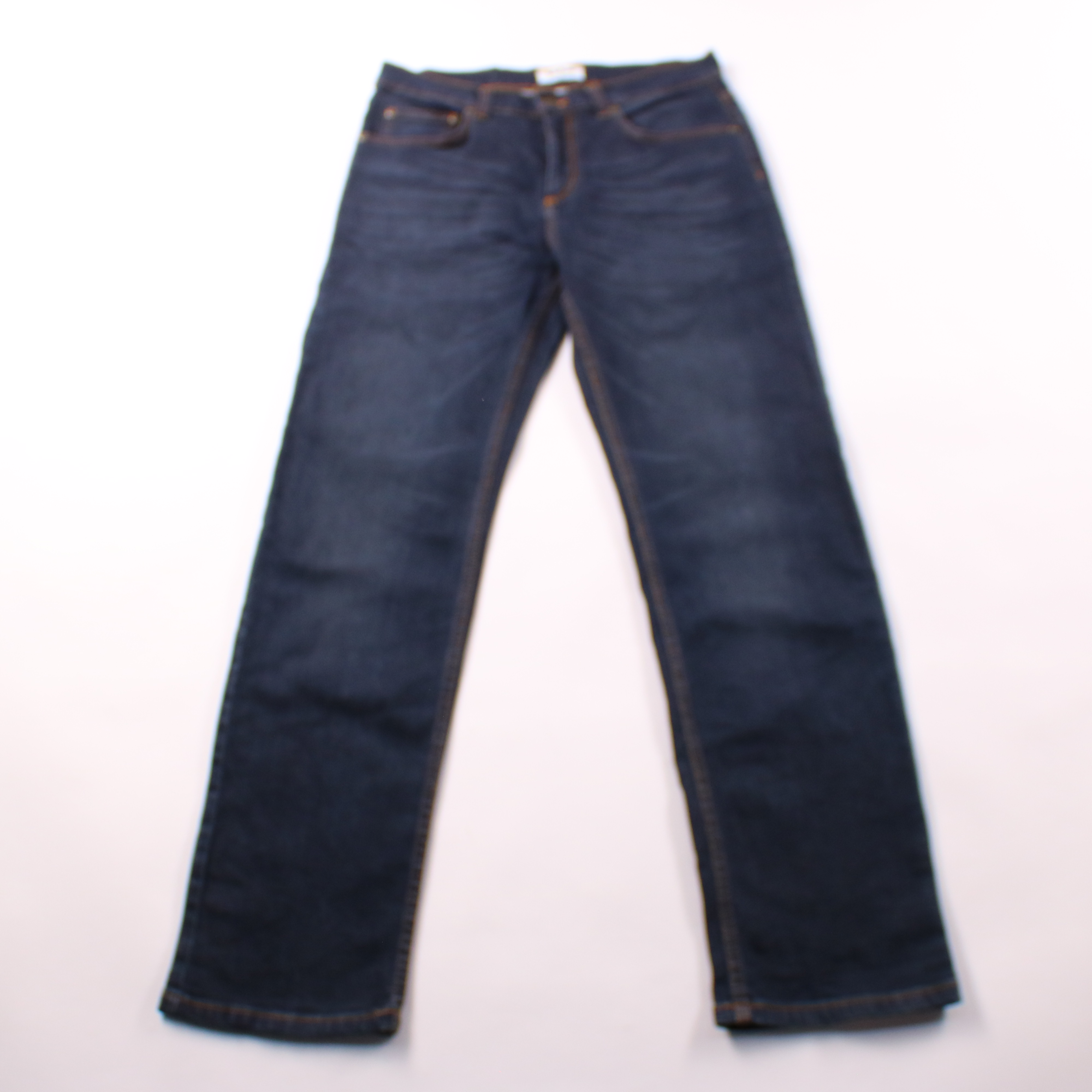 Женские джинсы John Baner из тёмно-синего денима со строчкой контрастной нитью. Подойдут для повседневной носки и офисных образов в стиле casual, легко сочетаются с футболками, рубашками и жакетами. Плотный хлопковый материал с добавлением эластана хор...