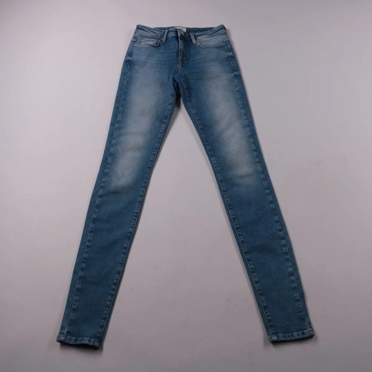 Женские джинсы ONLY узкого кроя в оттенке Light Medium Blue Denim с лёгкими потертостями. Подойдут для повседневных образов и прогулок, хорошо сочетаются с кедами и ботинками. Ткань с добавлением эластана немного тянется и комфортно садится по фигуре.