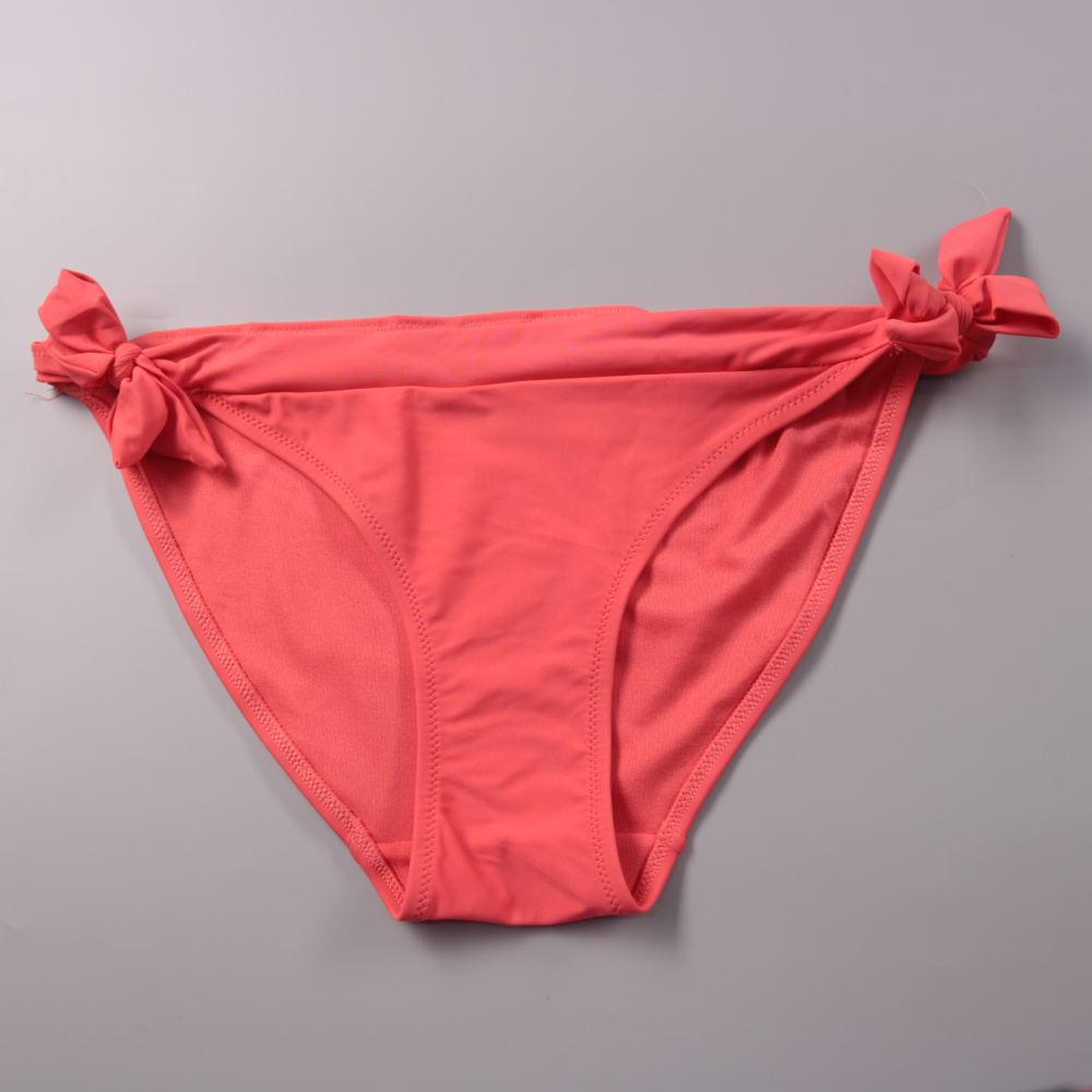 Женские плавки от не указанного бренда, кораллово-розового цвета, с завязками по бокам. Подойдут для пляжа и бассейна, легко регулируются по посадке. Быстро сохнут и занимают минимум места в сумке.