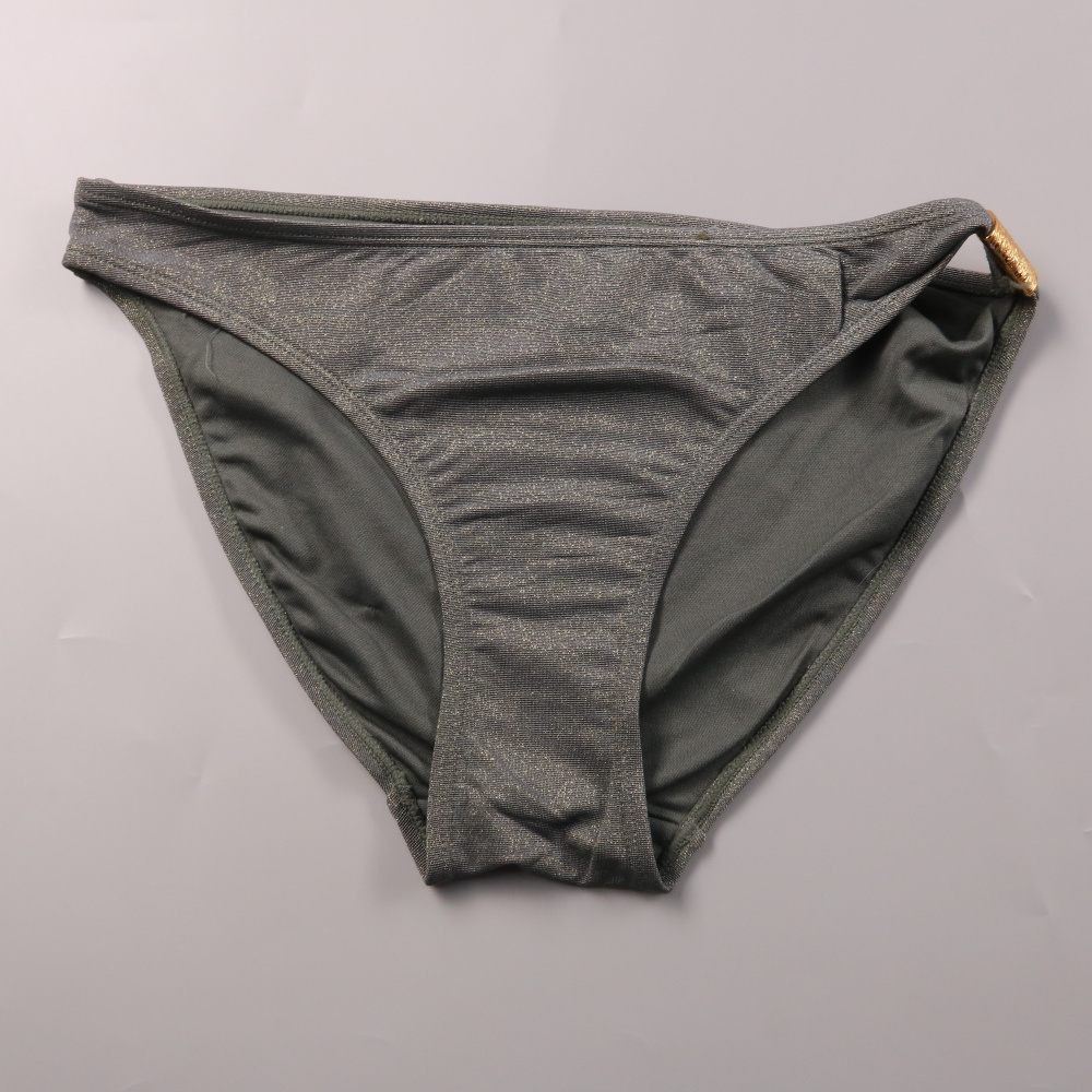Плавки от купальника Infinity Woman в сером цвете с легким металлизированным блеском и декоративной пряжкой сбоку. Подойдут для пляжа и бассейна, хорошо сочетаются с однотонным верхом. Эластичный материал комфортно садится по фигуре и быстро сохнет.