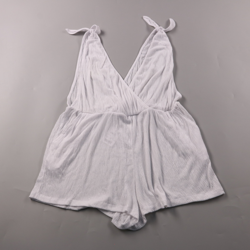 Женский пляжный комбинезон/прикрытие для купальника Anko Swim белого цвета с V-образным запахом и завязками на плечах. Подойдёт для пляжа и бассейна, удобно накинуть поверх купальника в отпуске. Лёгкая фактурная ткань быстро сохнет и не стесняет движения.