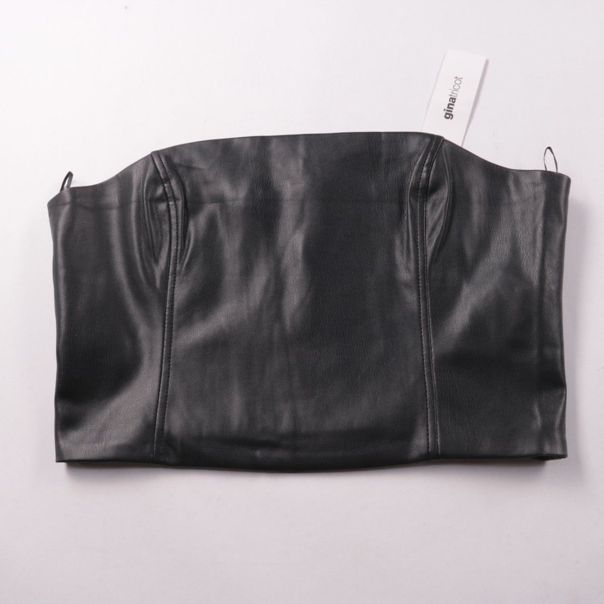 Корсет-бюстье Gina Tricot без бретелей из материала под кожу, чёрного цвета. Подойдёт для вечерних образов или как акцентный слой поверх рубашки/платья. Плотная посадка помогает держать форму и силуэт.