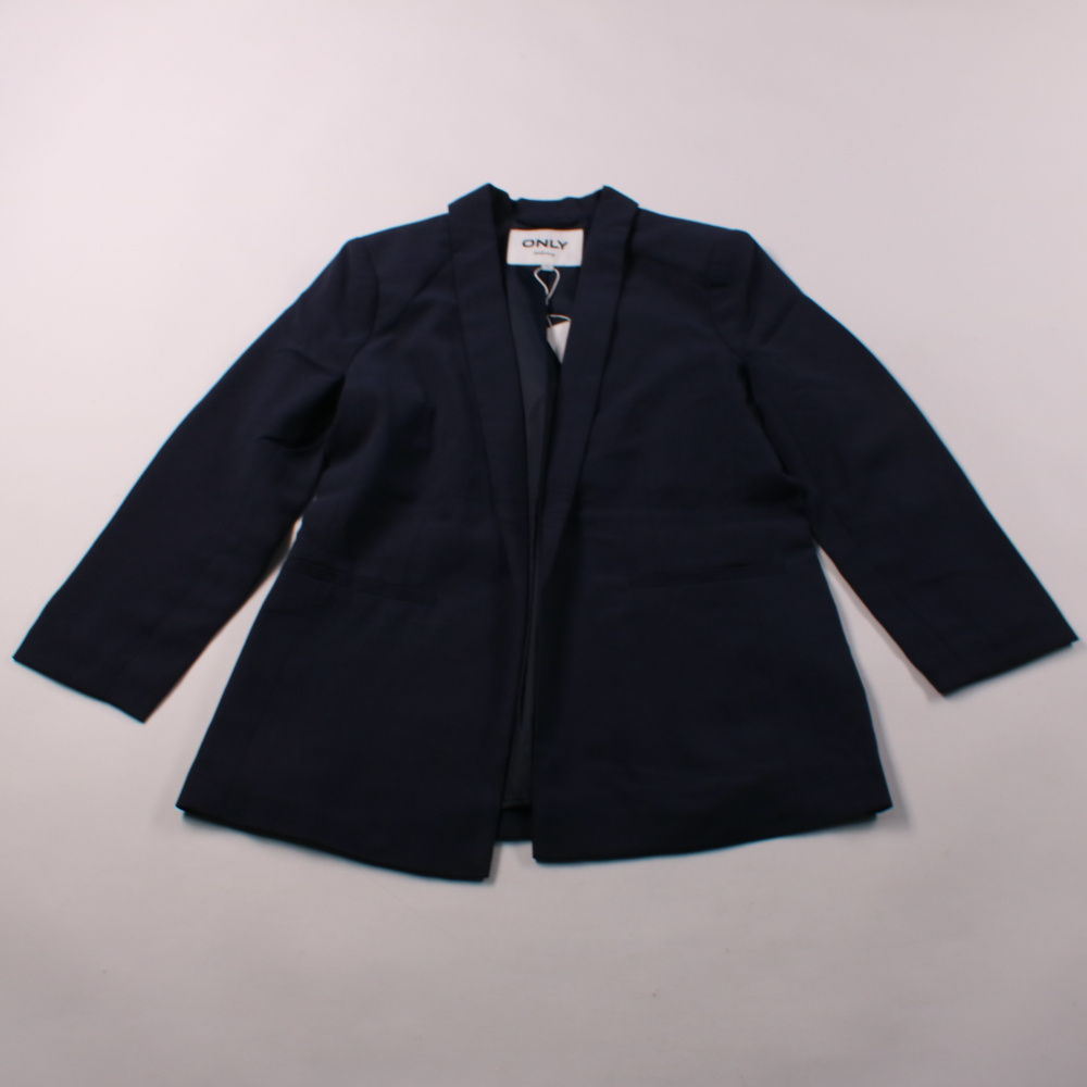 Женский пиджак Only в тёмно-синем цвете, лаконичный крой без лишнего декора. Подойдёт для офиса, учёбы и повседневных образов с джинсами или юбкой. Практичный материал из полиэстера почти не мнётся и прост в уходе.