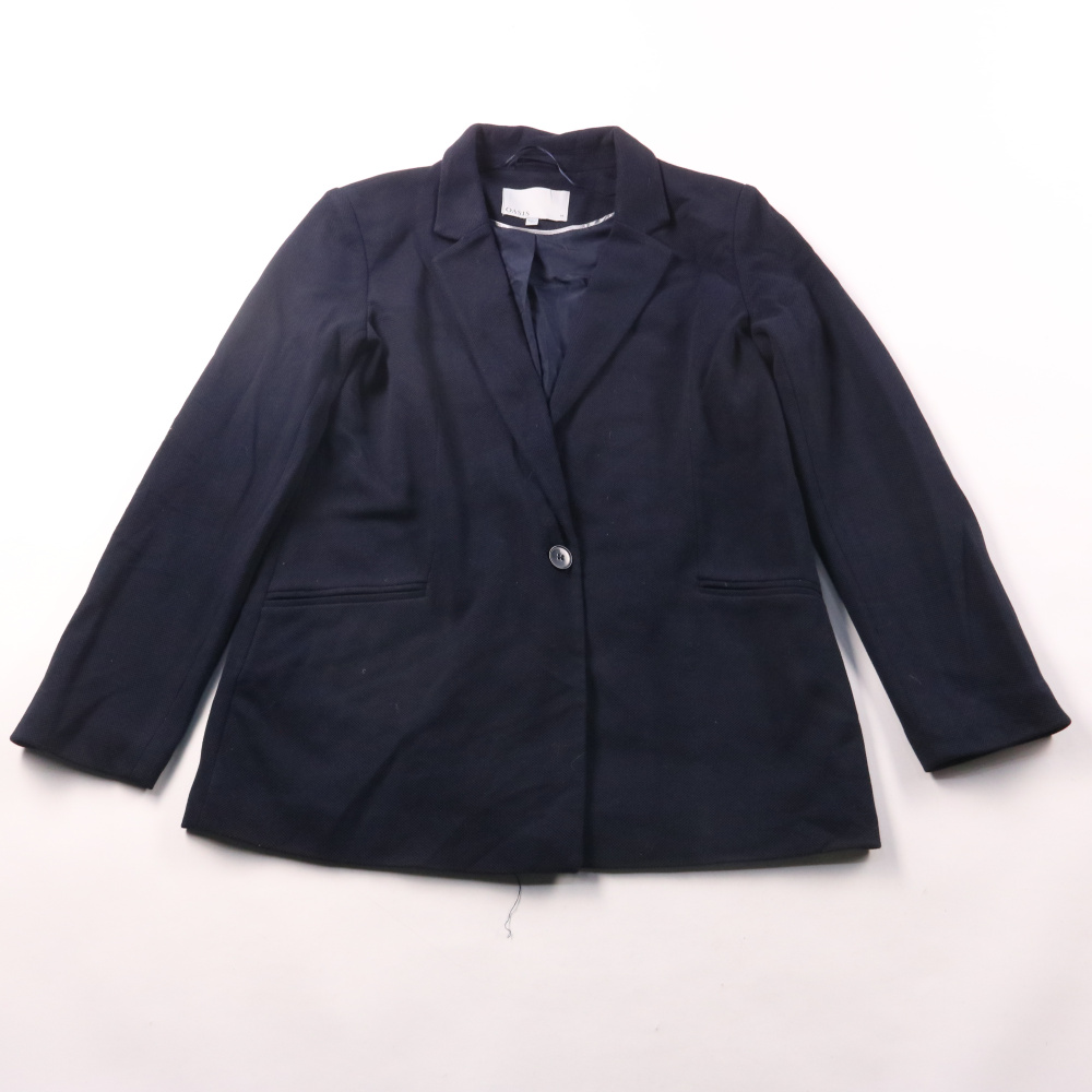 Женский пиджак Oasis тёмно-синего цвета с классическими лацканами и застёжкой на одну пуговицу. Подойдёт для офиса, учёбы и деловых встреч, легко сочетается с брюками, юбкой или джинсами. Практичная ткань почти не мнётся и удобна в уходе.
