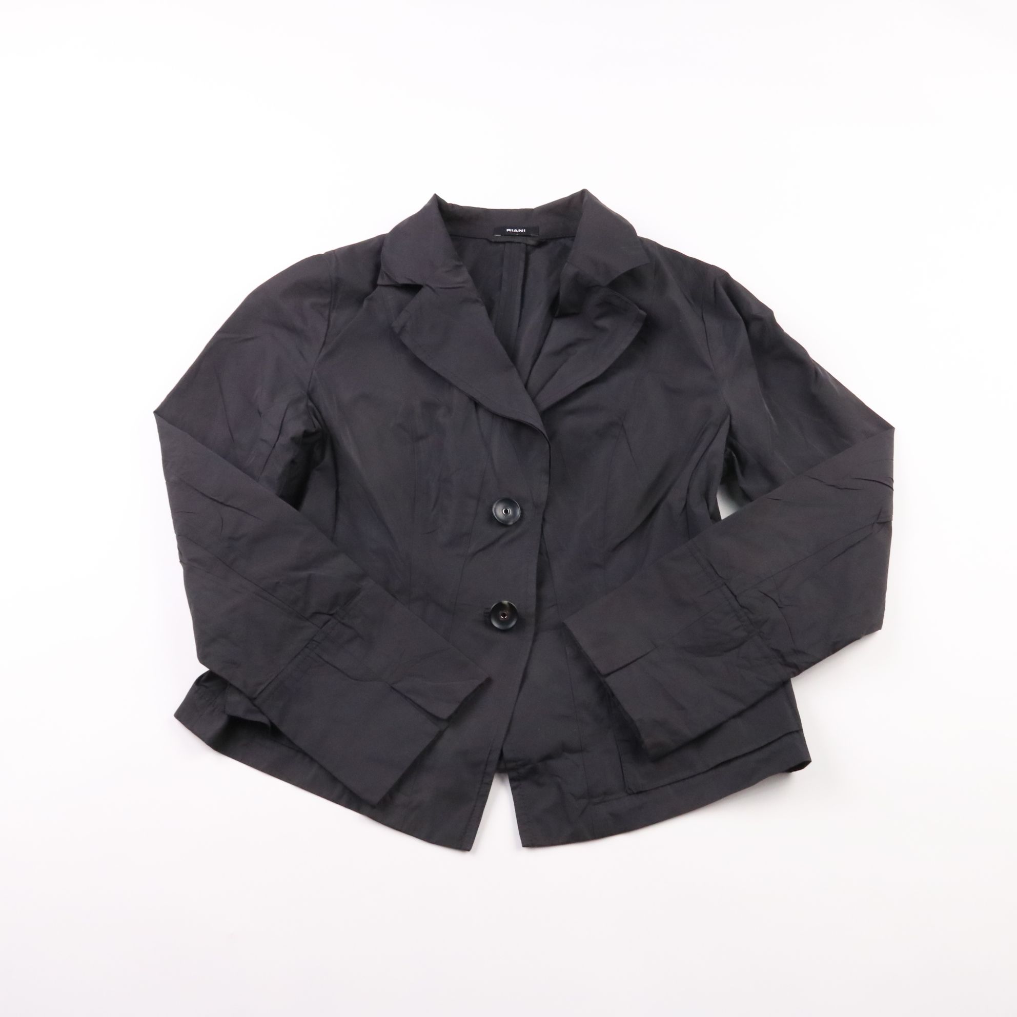 Женский пиджак RIANI чёрного цвета, однобортный на двух пуговицах с классическими лацканами. Подойдёт для офиса и повседневных образов, легко сочетается с брюками и юбками. Практичный материал из полиэстера меньше мнётся и прост в уходе.
