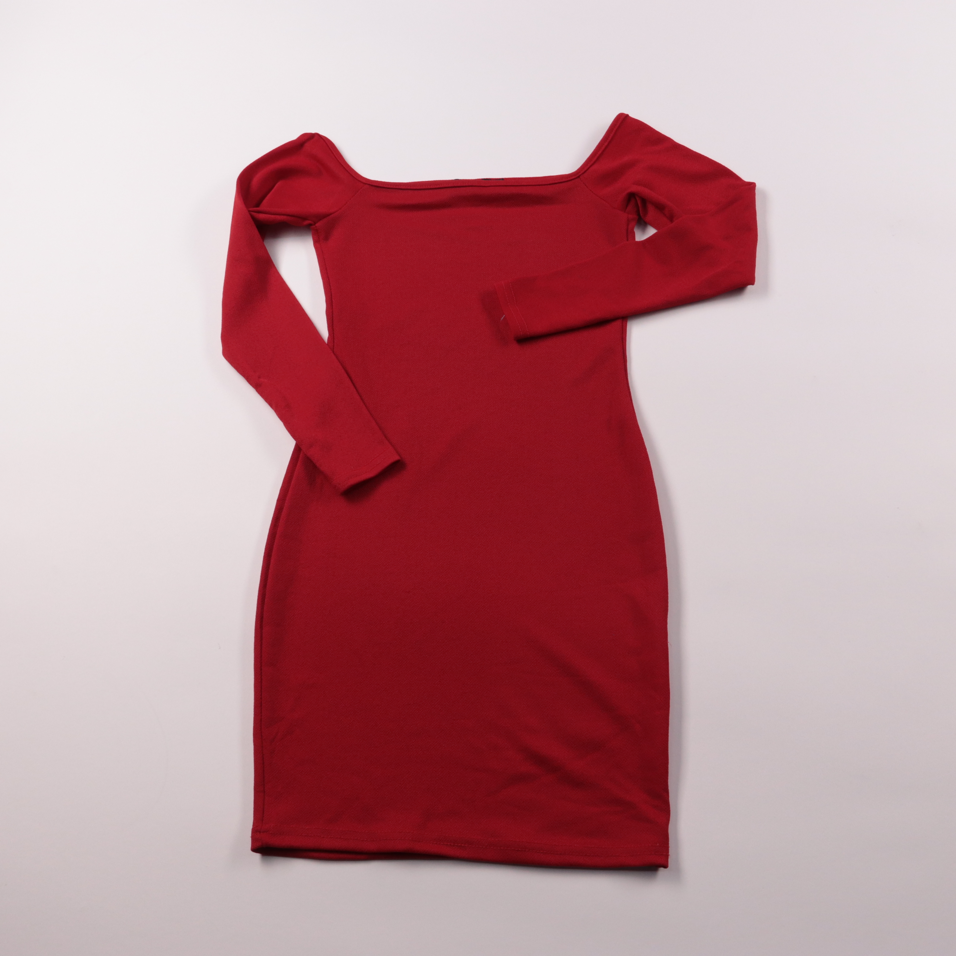 Красное облегающее платье PrettyLittleThing с открытой линией плеч и длинными рукавами. Подойдёт для вечерних выходов и повседневных образов с пиджаком или кожаной курткой. Эластичная ткань хорошо тянется и комфортно садится по фигуре.