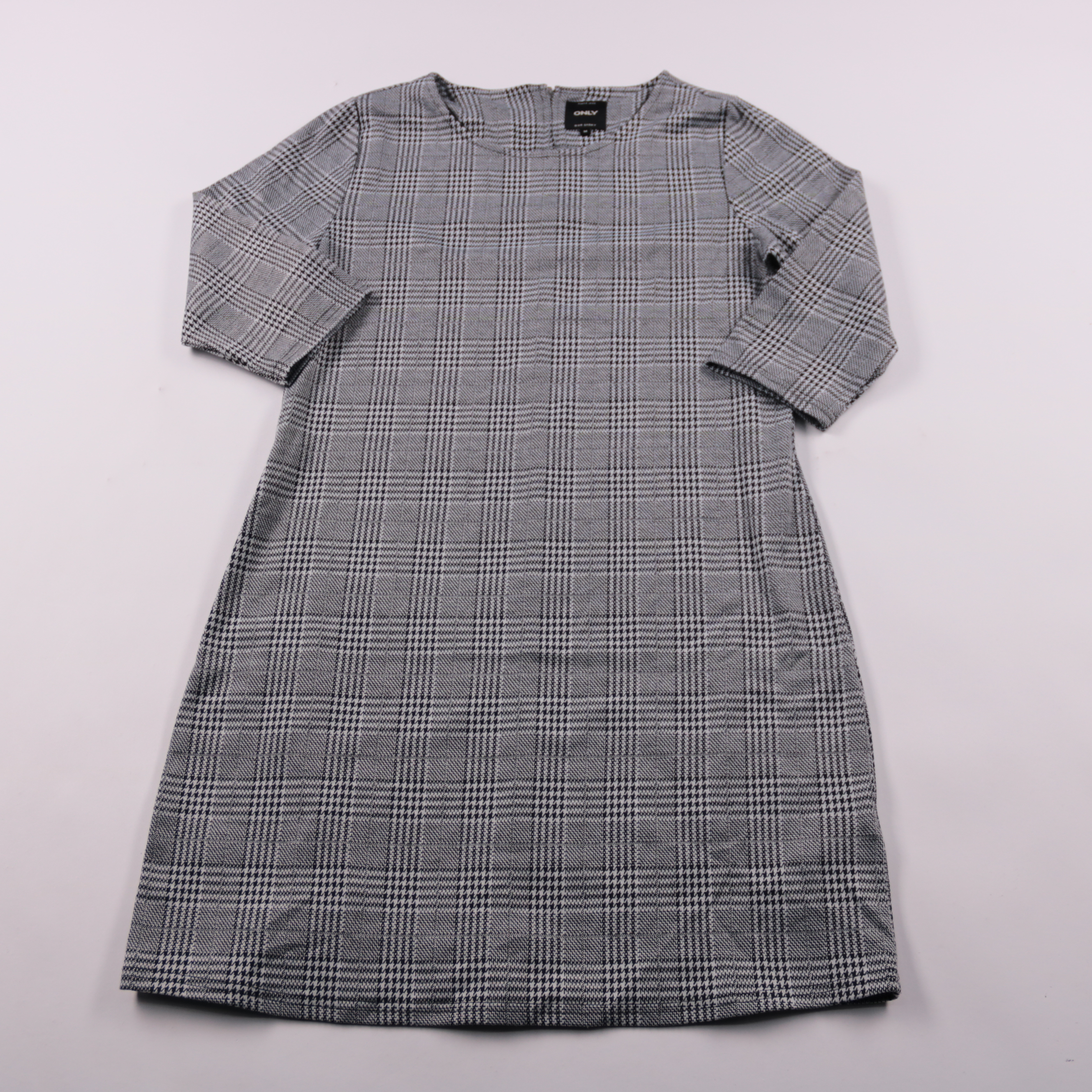 Повседневное платье Only в серо-чёрную клетку, прямого кроя с рукавом 3/4. Подойдёт для офиса и на каждый день, легко сочетается с ботильонами или кедами. Плотный материал держит форму и комфортен в прохладную погоду.
