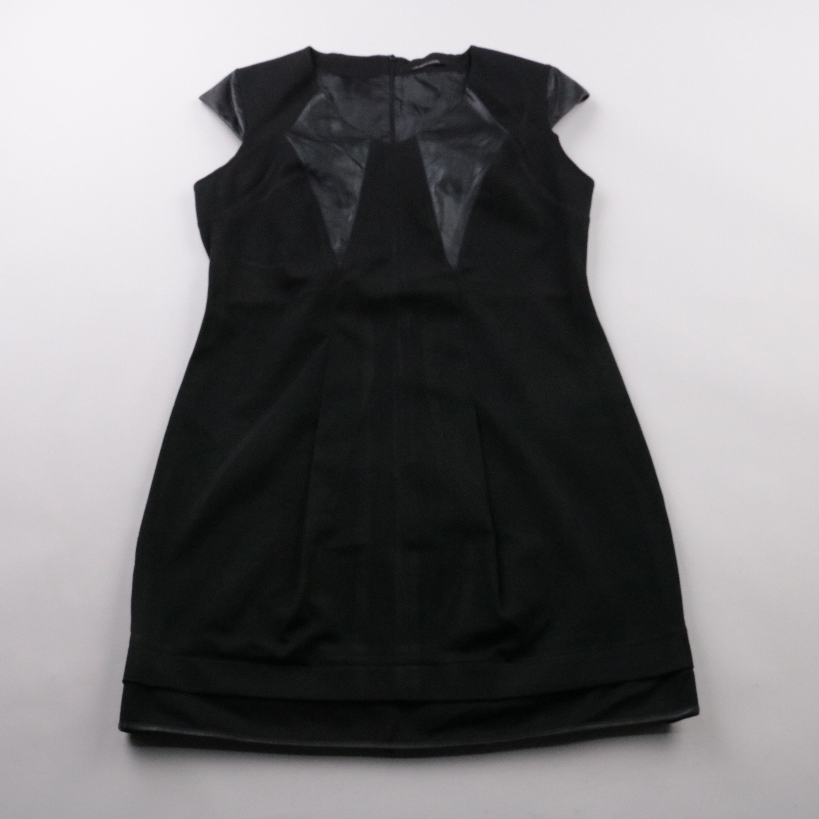 Чёрное платье Lauren Vidal прямого кроя с коротким рукавом и вставками из гладкого материала в зоне декольте. Подойдёт для офиса и вечерних выходов, легко сочетается с жакетом или кардиганом. Плотная ткань с эластаном держит форму и комфортна в носке.