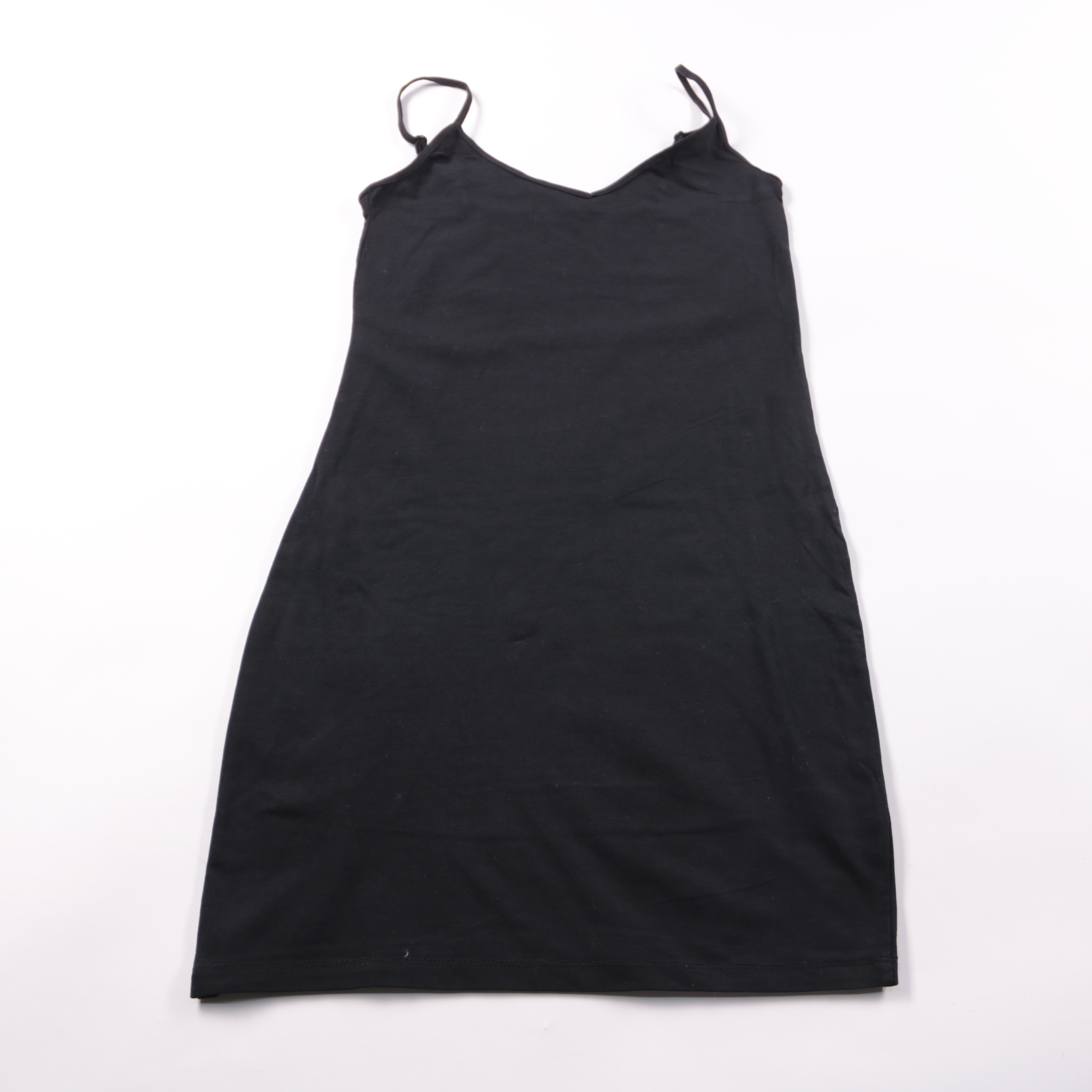 Лёгкое чёрное платье-комбинация Primark на тонких бретелях с V-образным вырезом. Подойдёт для летних прогулок и повседневных образов, можно носить как самостоятельное платье или в многослойных сочетаниях с жакетом. Практично тем, что занимает минимум м...