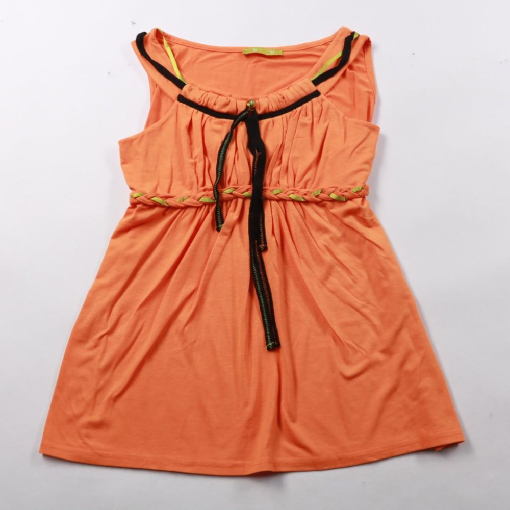 Летнее платье Caro из мягкой вискозы с добавлением эластана, в ярком оранжевом цвете. Модель без рукавов с декоративной тесьмой и шнуровкой на талии, хорошо подойдёт для прогулок и отпуска. Тянется и комфортно садится по фигуре, удобно носить в жару.