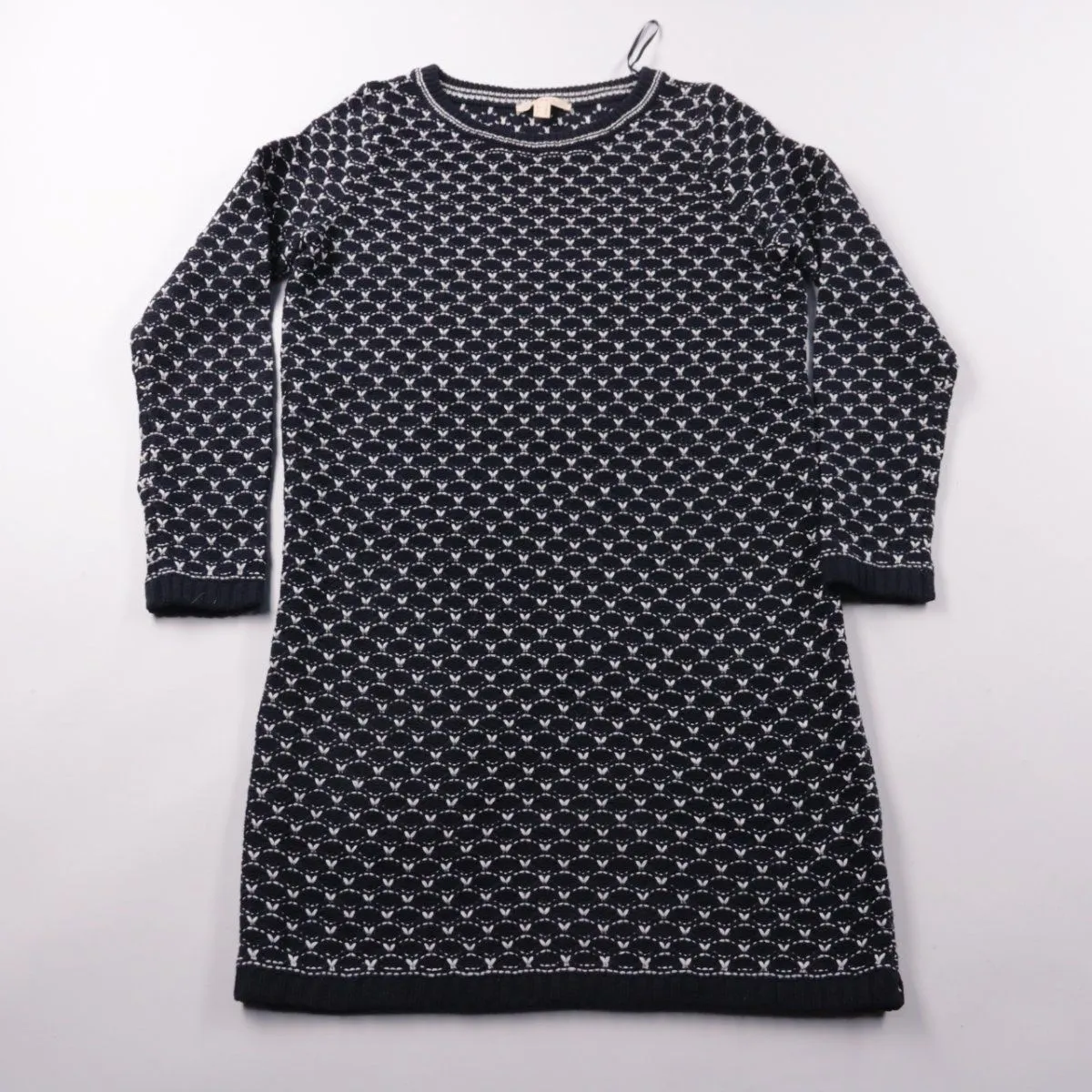 Повседневное вязаное платье Esprit с длинным рукавом и графичным чёрно-белым узором. Подойдёт для прохладной погоды и офиса/на каждый день с ботинками или кедами. Трикотаж хорошо тянется и удобно садится по фигуре.