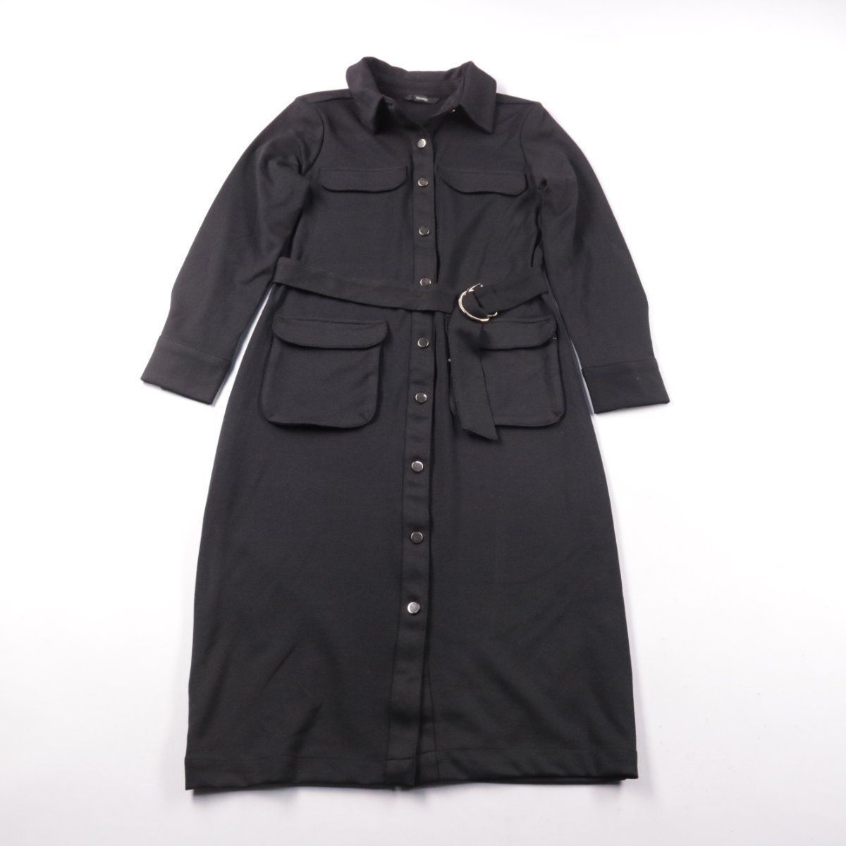 Черное повседневное платье-рубашка George с поясом и накладными карманами. Подойдет для офиса, учебы и городских образов в демисезон. Плотная ткань почти не мнется и хорошо держит форму.