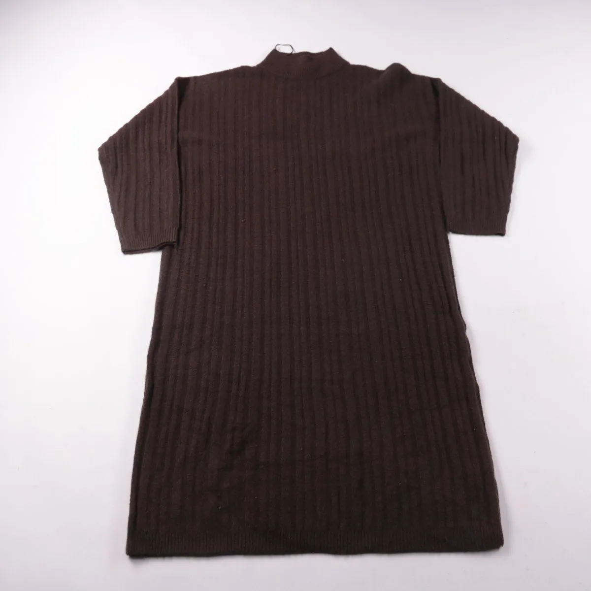 Повседневное трикотажное платье George в рубчик, коричневого цвета, с высоким воротником. Подойдёт для прохладной погоды и многослойных образов с жакетом или пальто. Эластичный материал комфортно тянется и не сковывает движения.
