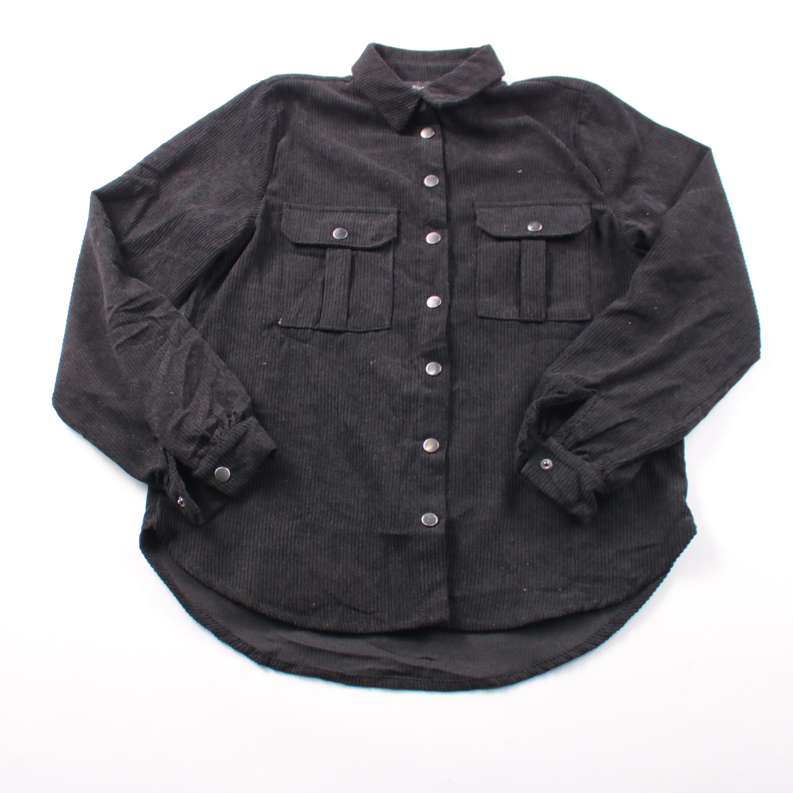 Вельветовая рубашка SisterS point в черном цвете на кнопках, с нагрудными карманами и удлиненной спинкой. Подойдет для повседневных образов в демисезон как самостоятельный верх или как легкая куртка поверх футболки/топа. Практична тем, что плотная ткан...