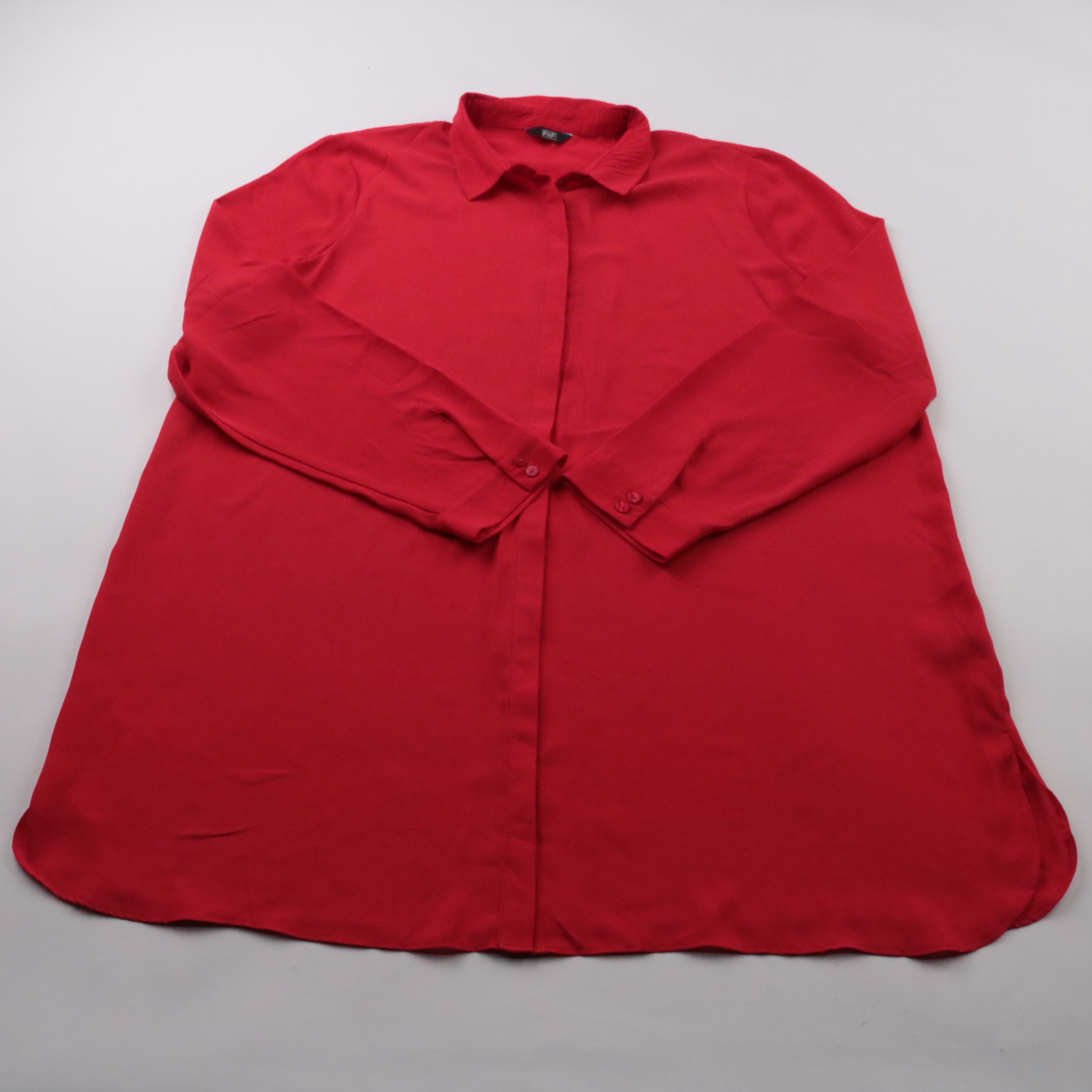 Красная блузка F&F с длинным рукавом и классическим воротником. Подойдёт для офиса и повседневных образов, хорошо сочетается с базовыми брюками или джинсами. Материал из полиэстера почти не мнётся и быстро сохнет.