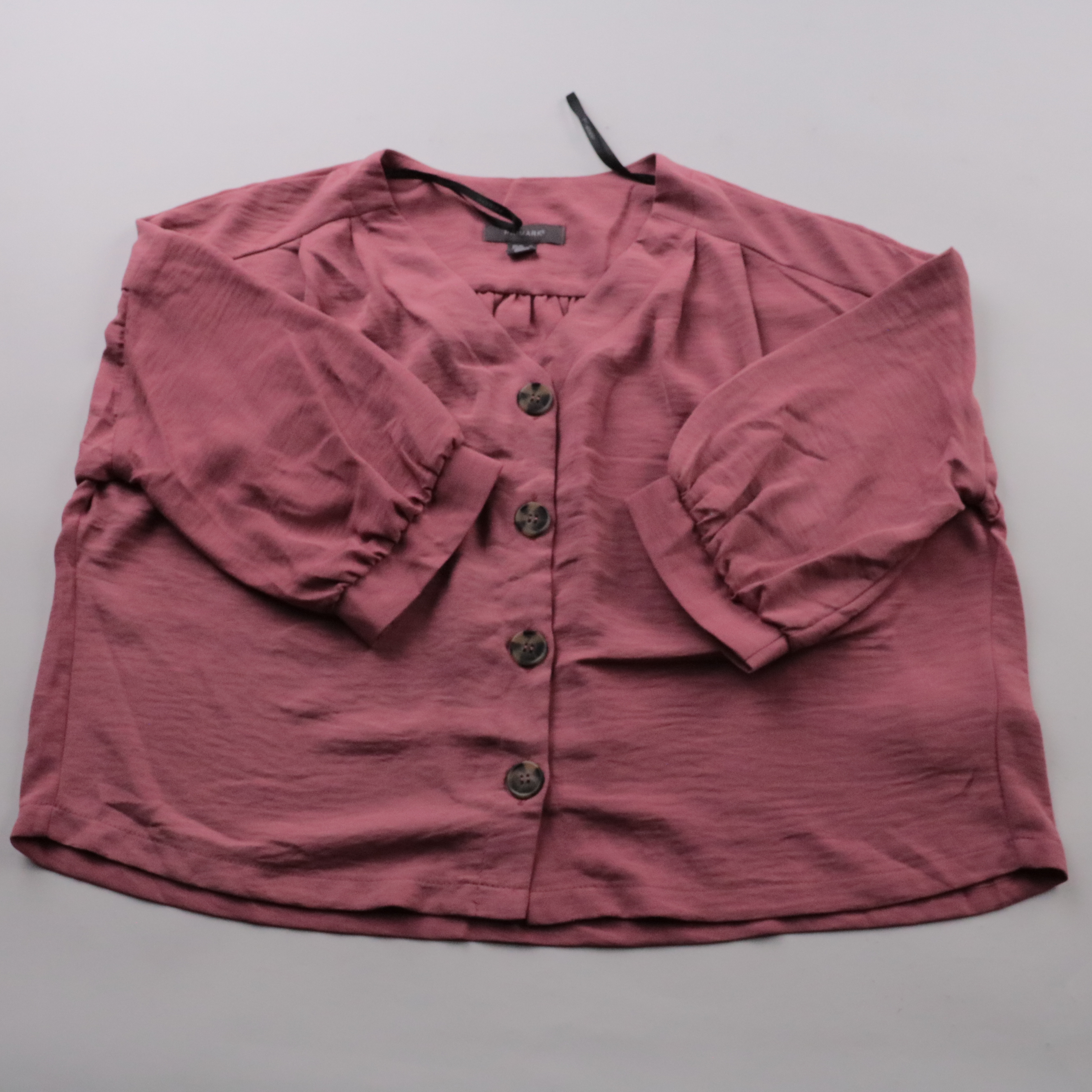 Блузка Primark пыльно-розового цвета с V-образным вырезом и застёжкой на пуговицы, рукава с лёгкой сборкой на манжетах. Подойдёт для офиса и на каждый день, хорошо сочетается с джинсами и классическими брюками. Ткань из полиэстера почти не мнётся и быс...